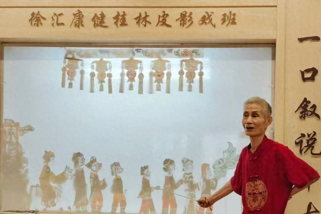 近几年,康健街道一直坚持为皮影戏队提供排演场地,每周日上午基本功排练,下午进行传统皮影戏的连台本戏演出,实行周周演,对社区居民开放,免费请大家观赏。这支桂林皮影戏队有一个雅号——“八百天团”,因为团队老艺人们年龄加起来超过了800岁。名号虽然响亮,但也透露出隐忧——老艺人凋零,后继者乏力。