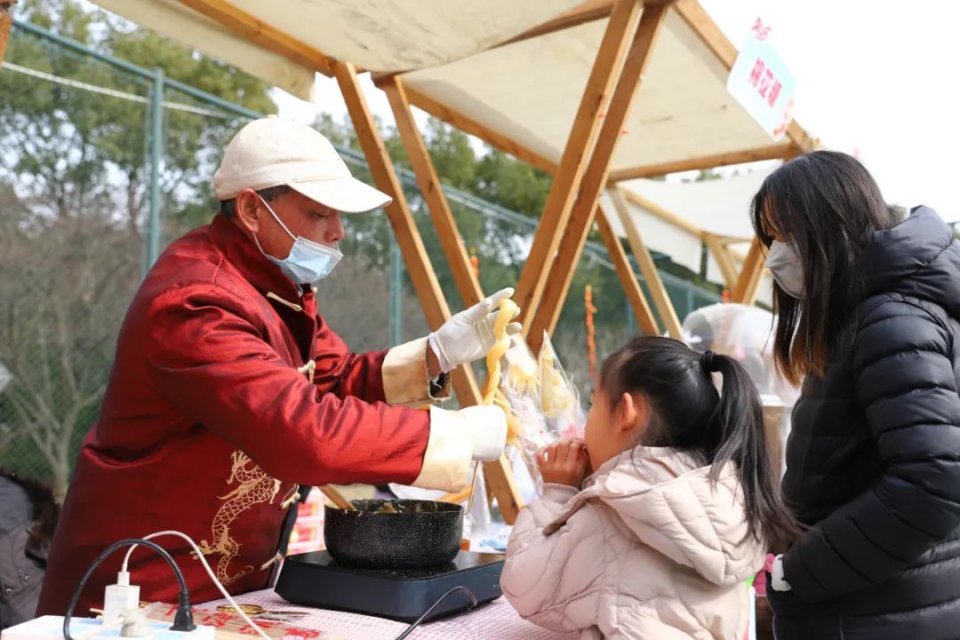 现场,传统又现代的打莲湘、激昂且深情的朗诵、典雅优美的舞蹈、诙谐幽默的滑稽戏等节目轮番上演,为观众精心烹制了一场文化大餐。年货展销活动也很热闹,食品促销区汇聚了各类传统美食,糖果、糕点、腊味、干货……琳琅满目,知名本土企业与本地特色商家齐聚,为居民们准备了充足的年货。民俗文化区更是年味十足,传统手工艺品、春联、福字、剪纸、糖画、吹糖人等摊位人头攒动,民间艺人现场展示精湛技艺,传承民俗文化,营造出浓浓的节日氛围。在跳蚤集市区,居民与孩子们结伴将家中闲置物品摆上摊位,玩具、书籍、手工艺品应有尽有,大家以物换物、低价售卖,享受“淘宝”乐趣。互动体验区则充满欢声笑语,投壶、滚铁环、丢沙包等游戏吸引了男女老少踊跃参与。