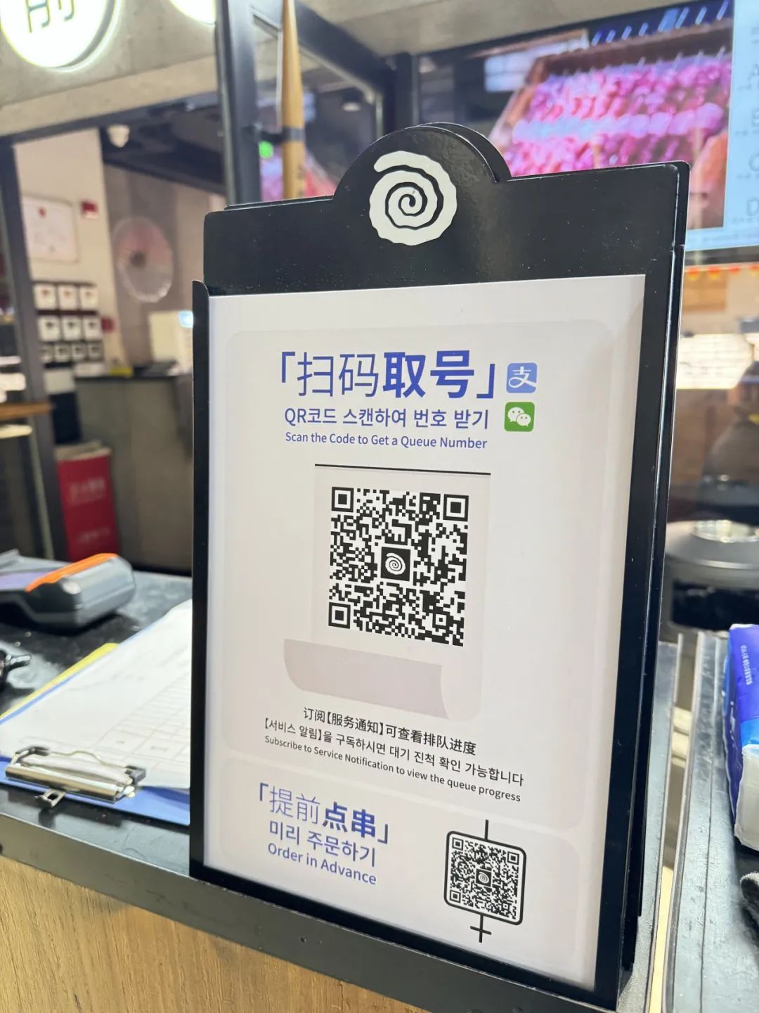 为了接住这波客流,商家也做出不少改变。记者注意到,门店的菜单、服务提醒都增加了韩语,支付宝点单页面也有韩语,店员使用英语和翻译器和韩国顾客进行基本的沟通,门店经理透露,接下来还打算聘用熟练使用韩语的工作人员。