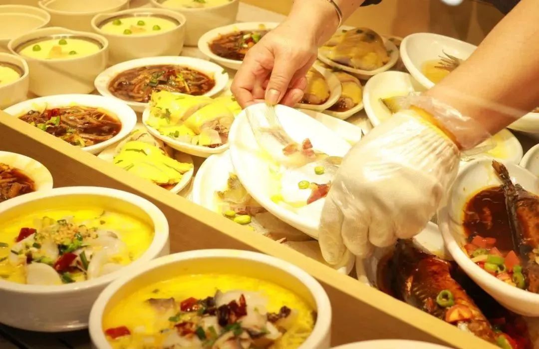当天上午11点多,记者走进宽敞明亮的宜德饭堂,整洁有序的就餐环境让人眼前一亮。橱档里摆满了各式各样的菜品,剁椒鱼头、虾仁烩豆腐、淮阳小炒等佳肴令人垂涎欲滴。正值用餐高峰,点餐区排起了长队,不仅有附近居民和楼宇职工,还有许多外卖骑手和快递小哥前来就餐。