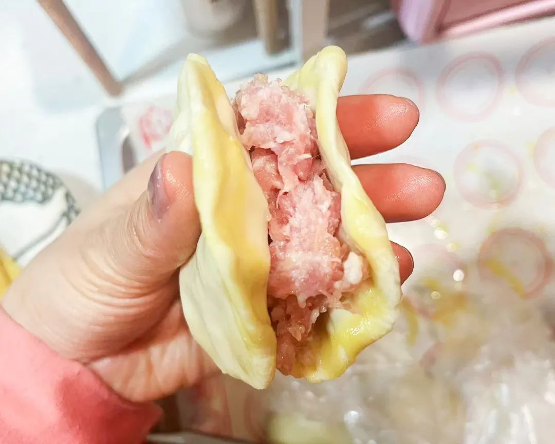 东河肉饼是浙江义乌传统小吃之一以其鲜香、油而不腻色泽光亮而闻名来和小嘉一起做吧~准备材料面团:面粉250克、盐3克、开水85克、常温水85克(此配方可做5个肉饼)肉馅:肉末、盐、蚝油、味精、生抽、白胡椒、葱花其他:食用油制作过程1.将250克面粉、3克盐、85克开水混合在一起,搅散后加入85克常温水揉搓均匀。2.分成40克一个的光滑面团10个,平盘喷油后平铺,表面再喷一层油,盖保鲜膜静置40分钟。(面团冷藏可隔夜使用,并在48小时内用完)。3.拿2个面团,分别压扁,其中一片放入肉馅后,盖上另一片,边缘捏紧。4.将包入馅料后的肉饼,通过按压抻拉变大。5.平底锅预热180度以上,少量喷油后放入肉饼。6.小火煎制,一面烙出饼花后喷油翻面,另一面煎好后即可出锅。皮薄如纸、香气四溢一起来试试看吧~