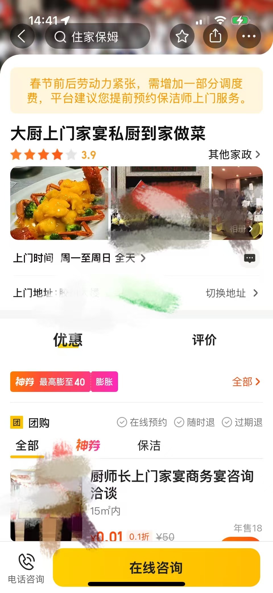 此外,线上平台积极推广私厨上门服务、外带服务等,为消费者提供多样选择。