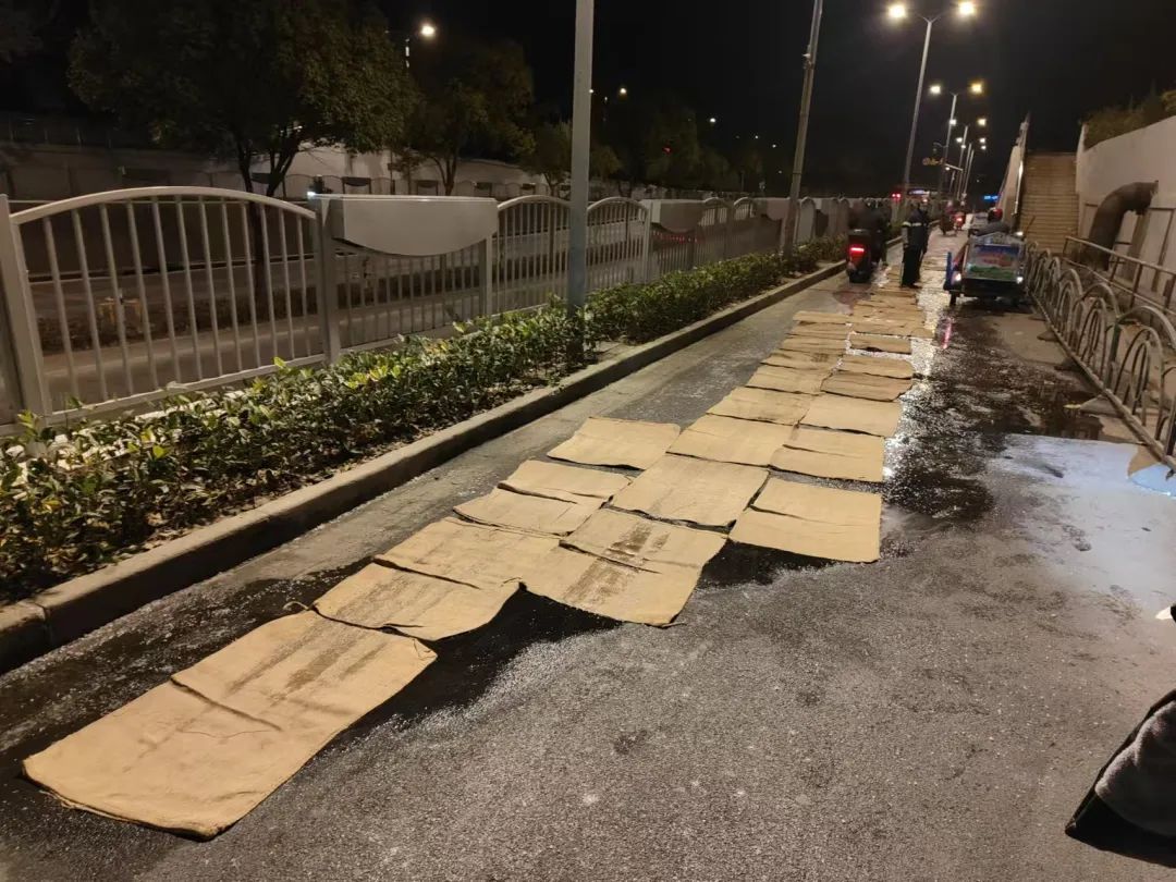 真如班班组长任真介绍道:“班组提前一天关注天气预报,如遭遇低温、下雨、大风等恶劣天气,会先在工作群通知环卫工。如果面对小于20㎡且影响市民通行的结冰区域,环卫工人会利用铁锹、推雪板、沙包、草垫等作业工具处理。”