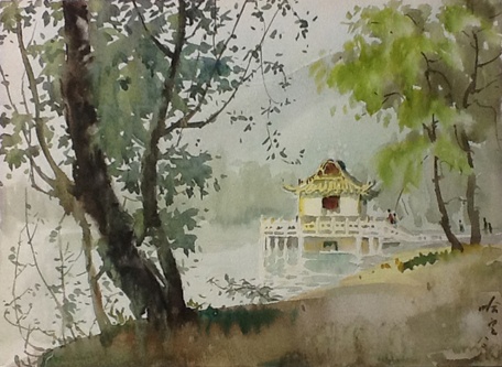 同时他也对中国画深有研究,并热衷于中西艺术的融合和创新。所以,他的水彩画中既有维涅尔具象写实的西洋画风,又有中国文人画写意的主观情趣。到了晚期,他的水彩画风受到塞尚和梵高等印象派的影响,逐步转向抒发和表现自己心灵的感受,笔法也变得简略而写意,与李詠森的写实水彩形成鲜明对比。