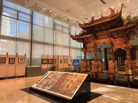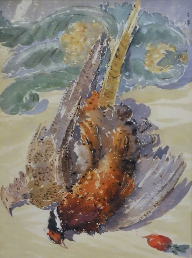 土山湾博物馆内展出的王珲水彩作品《花菜雉鸡》《清清白白,富足有余》
