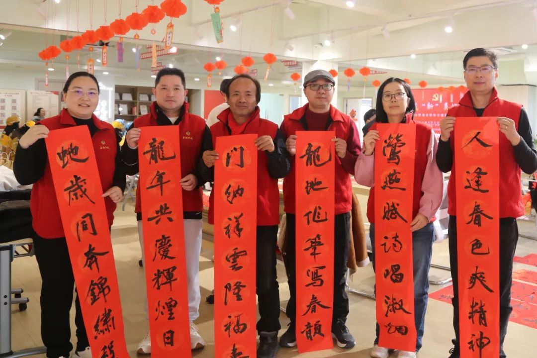 活动现场,来自区政协文体界别的委员们正挥毫泼墨,寓意美好的春联和“福”字已经铺满一地,红彤彤的装扮让现场年味十足。辖区居民也前来助阵,带来舞蹈、乐器演奏等精彩的文艺表演,引得阵阵欢呼。骑手小哥三三两两结伴,先挑选上几副心仪的春联,又一起琢磨灯笼上悬挂的灯谜,欢笑声不断。