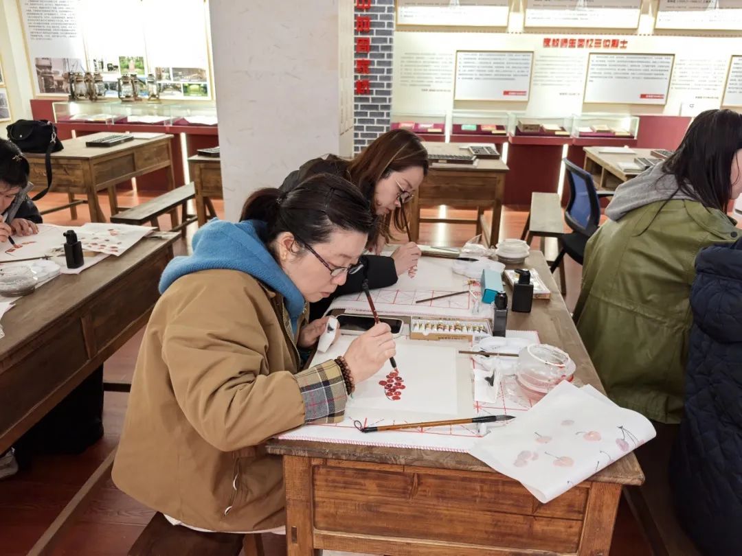 而这次国画课程的开办,则是周家桥街道“青年夜校”第一次在“三十七民众夜校”旧址纪念馆开设课程。陈列馆内的老物件、老照片,还原了昔日夜校旧场景,与如今青年们认真学习的姿态交映,仿佛有一种“穿越”的历史感。