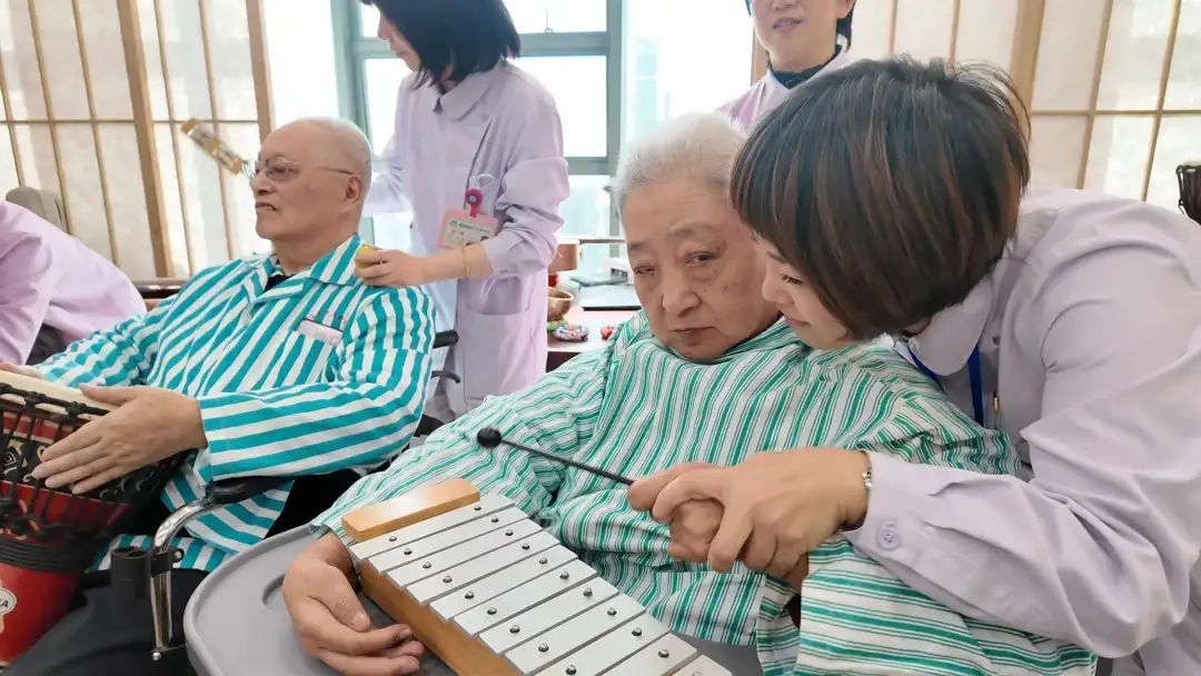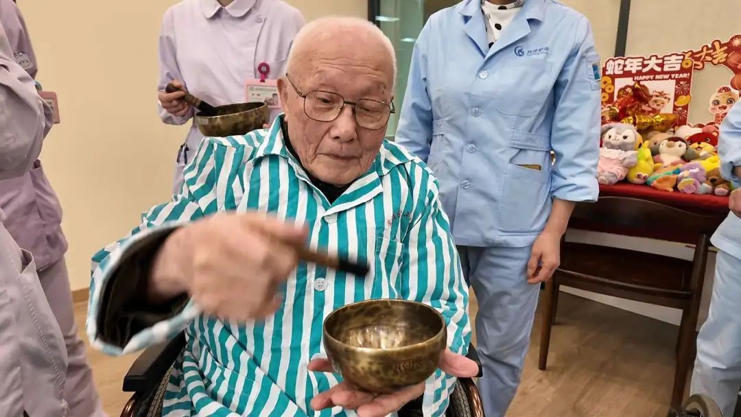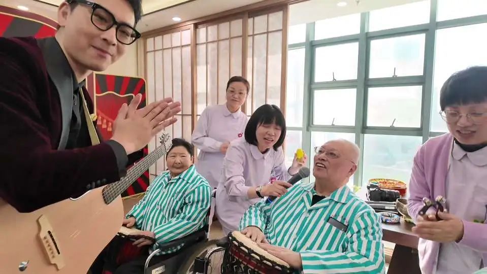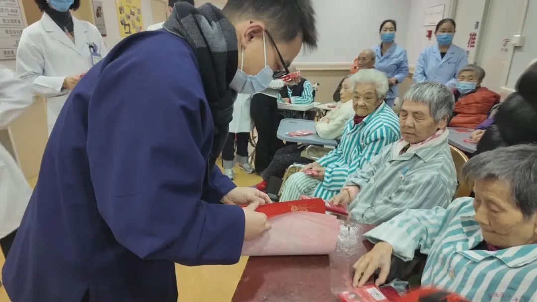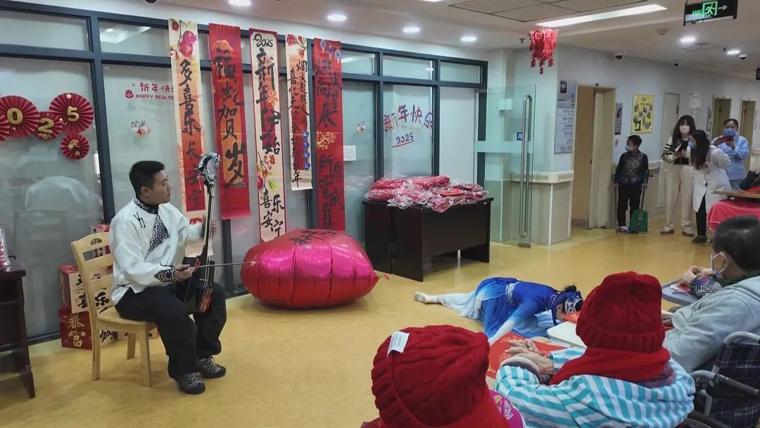 随着农历新年的脚步越来越近,豫园街道社区卫生服务中心、黄浦区老年护理医院举办了一场别开生面的“豫乐匯·新春送福”迎新活动。这场活动不仅为住院老人和就诊居民带来了浓浓的节日氛围,更让他们收获了满满的福气。一大早,医院内就充满了欢声笑语。院方精心策划了一场文艺演出,马头琴的悠扬旋律在空气中回荡,蒙古族表演的独特风情让老人们眼前一亮。他们纷纷鼓掌喝彩,脸上洋溢着开心的笑容。一位住院老人激动地说:“我感到非常开心,有那么好看的演出,还有礼物,在这里提前过春节非常开心。”下午,随着“新鸳鸯蝴蝶梦”响起,在八楼活动室,带教音乐志愿者徐博杰一边弹奏吉他一边演唱,身边围坐着十位老人,一起为他伴奏。这些由非洲鼓、颂钵、小木琴、摇铃组成的伴奏乐器,在老人们手中不停地来回敲击,时高时低,显示了欢快喜悦的心情。原来,让这些老人使用伴奏乐器,是音乐康复治疗的一环。徐博杰告诉记者,有的老人已经八、九十岁年纪,要帮助恢复记忆,使用的乐器往往越简单越好,所学的伴奏曲有的甚至来自幼儿园的音乐课程,目的就在于音乐与康复相结合。徐博杰表示,老人平时在家,可用碗、筷等厨具来代替乐器,只要根据节拍敲击就行,难度不高。将这样的练习融入到音乐里,对改善老年人的认知障碍很有帮助。这样的传统音乐疗法与打击乐相结合,能够刺激记忆、提升注意力、提高协调能力。老人们被鼓励参与简单的节奏敲击,不仅增强了感官体验,还促进了社交互动,有效缓解了因认知障碍带来的孤独感和焦虑情绪。除了精彩的文艺演出,住院部的走廊也被装扮得喜气洋洋,处处洋溢着浓浓的年味。医护人员们亲手为老人们送上了红色的毛线帽、红围巾、红袜子以及大红福字。这些贴心的礼物寓意着新的一年里红红火火、福气满满。老人们收到礼物后,脸上洋溢着幸福的笑容,纷纷表示感受到了社会的关爱和温暖。其中,百岁老人叶老伯作为护理医院里最高寿的老人之一,更是受到了特别的关照。他身穿一身红色的行头,显得神采奕奕。医护人员们围在他身边,为他戴上红色的毛线帽,围上红围巾,还送上了大红福字。叶老伯笑得合不拢嘴,连声说:“今天收到了帽子保暖,还有根红围巾,很开心的!谢谢你们这么关心我!”与此同时,在豫园街道社区卫生服务中心的一楼大厅,活动也进行得热火朝天。医护人员们还提供了写“福”字、做手工、手工画等新年装饰品制作活动,让大家在动手制作中感受到节日的喜悦。此外,中医团队还为大家送上了中医养生茶饮,并提供了眼部熏蒸、眼镜养护、家庭药箱整理以及口腔健康咨询等服务。据悉,住院部五个楼层还分别举行了写春联、猜灯谜、拍新春照等活动。豫园街道社区卫生服务中心、黄浦区老年护理医院表示,本次活动旨在让住院老人和就诊居民提前体验到了浓浓的年味,更在欢声笑语中感受到家一般的温暖,希望新的一年大家都能够健康快乐。记者 / 李德翔 邵林峰 瞿煌俊