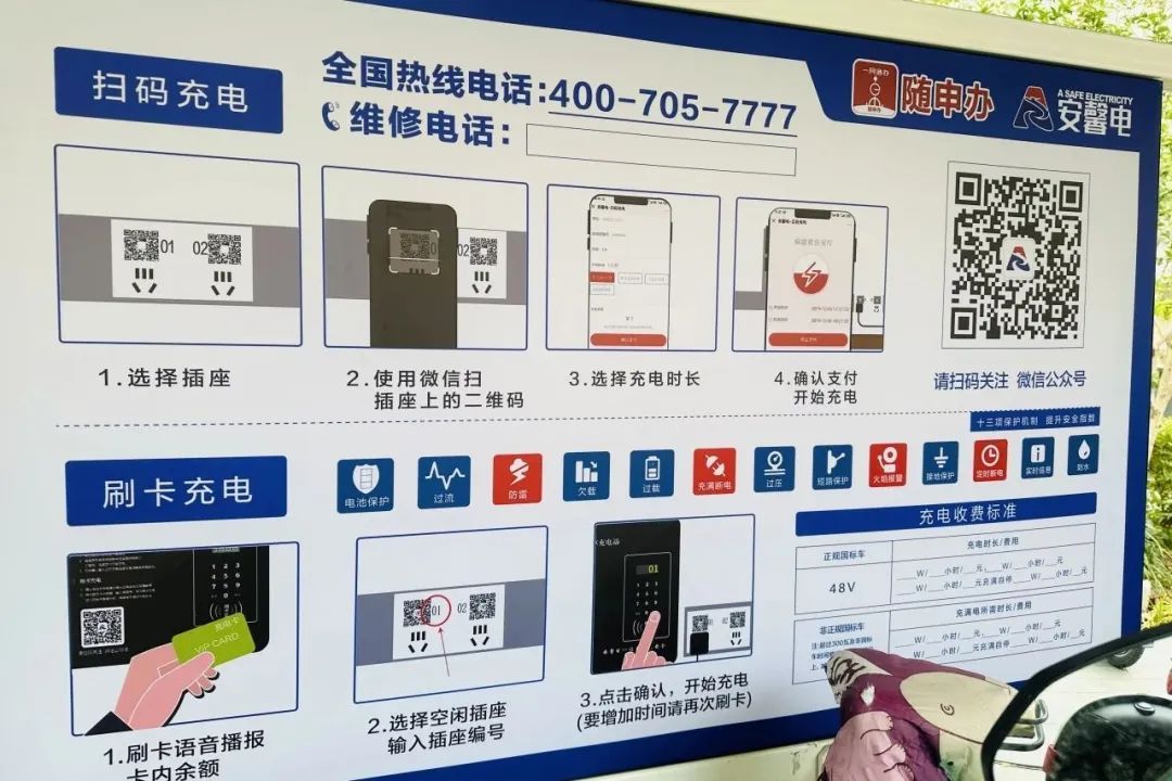 居民和商户只需通过手机扫描插座上的二维码,按照提示选择插口并付费,即可享受1元5小时、2元10小时、2.5元12小时的充电服务。