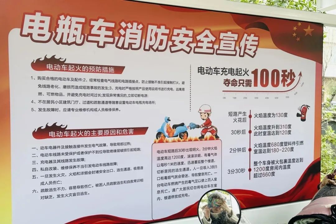车棚内布设有宣传栏及LED大屏,可通过展示相关消防安全宣传提示和警示新闻,进一步提高周边居民和商户的消防安全意识。