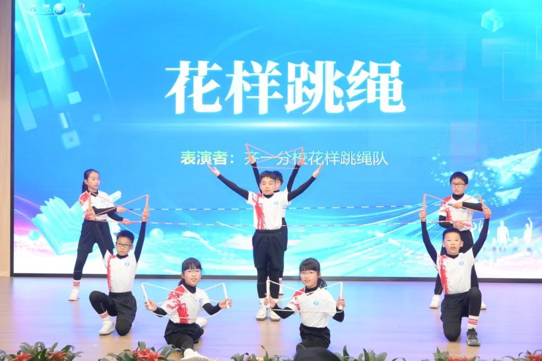 在江浦路街道第十八届学习节启动仪式上,来自齐齐哈尔第一小学分校的同学们,带来了开场表演花样跳绳。花样跳绳是一项非常考验技术和配合的运动,同学们用手中的跳绳,挥洒着青春的活力,编织着美好的梦想。