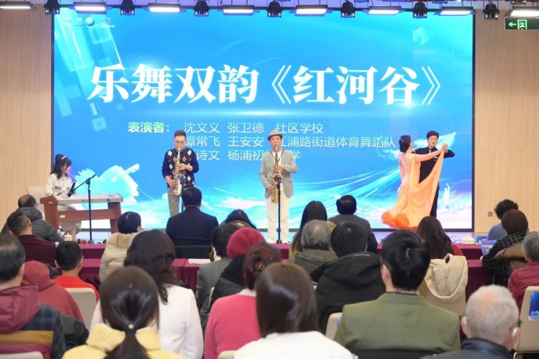 启动仪式上,来自江浦路街道社区学校、杨浦初级中学、江浦路街道体育舞蹈队的学习爱好者们,充分利用街道辖区内的学习资源,将音乐与舞蹈完美结合,共同演绎了一段乐舞双韵表演《红河谷》,让大家在优美的旋律和舞姿中,感受到了一份对美好生活的向往和追求。
