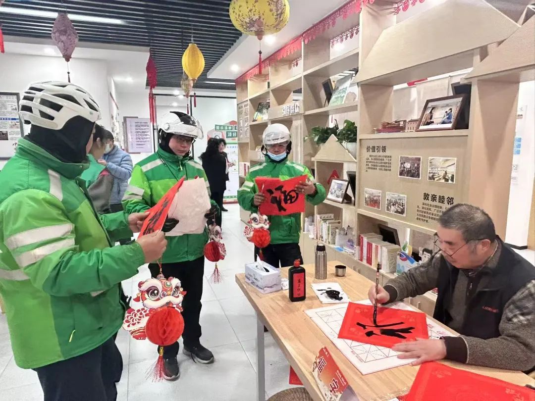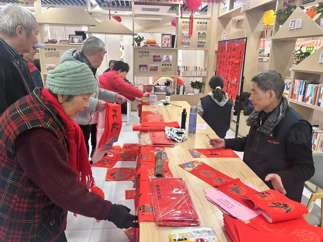 来自街道社区学校的书法老师何顺发和朱一通过笔墨的运用,把祝福之情融入每一个笔画之中,一副副苍劲有力的对联和喜庆吉祥的“福”字跃然纸上,前来领取的居民络绎不绝,当他们拿到喜庆的春联时,脸上不由自主地绽放出幸福的笑容。“这个春节之前能够拿到这个福字,我也非常开心,希望把福气带回去。”居民捧着福字,喜上眉梢。
