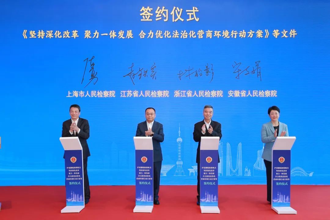 ►构建沪苏浙皖检察协同机制:沪苏浙皖检察机关优化法治化营商环境座谈会在上海召开,会签系列协助机制文件,形成涉反腐败、金融风险防控、商业秘密保护等多项跨区域司法协作共识。