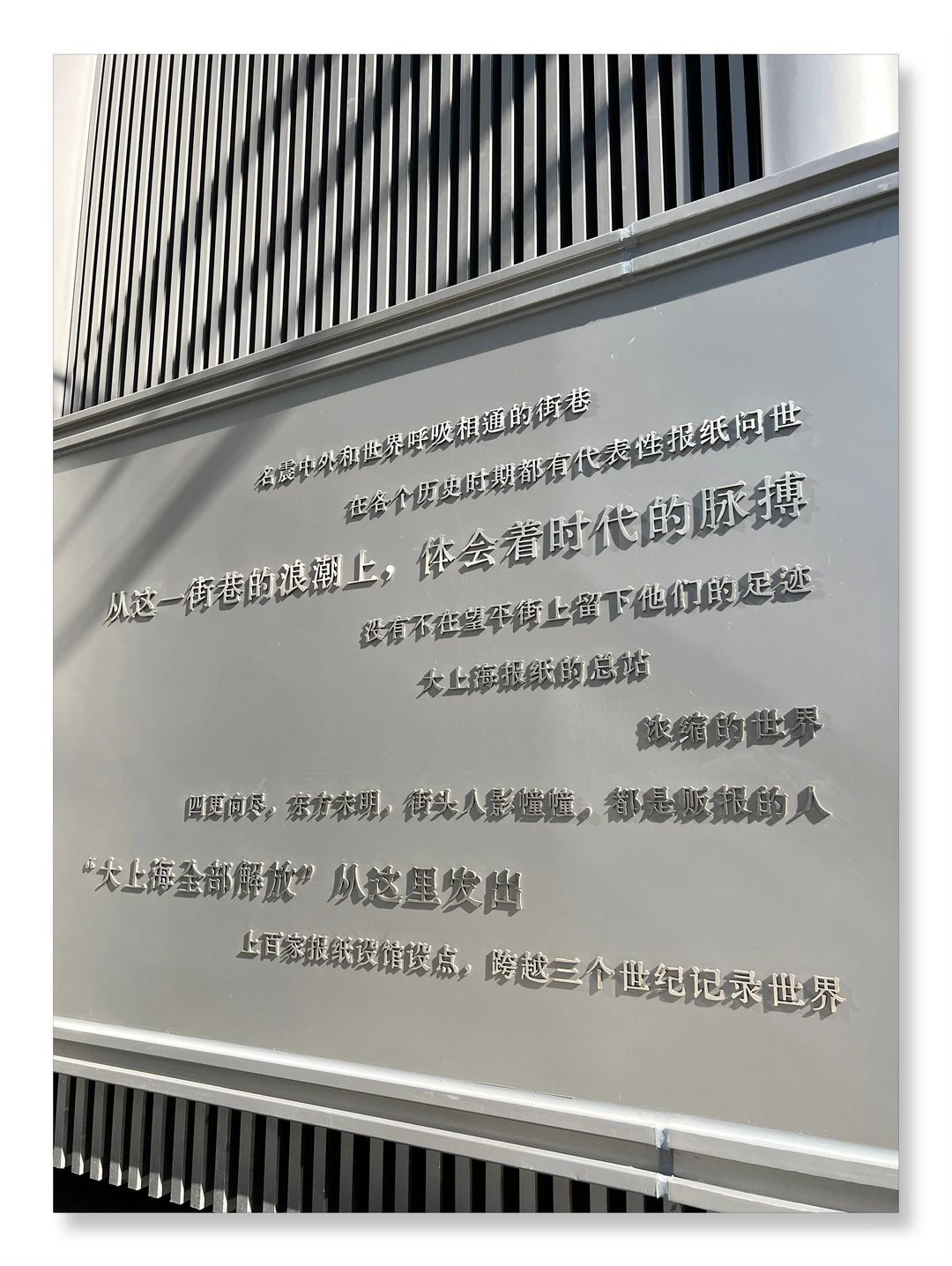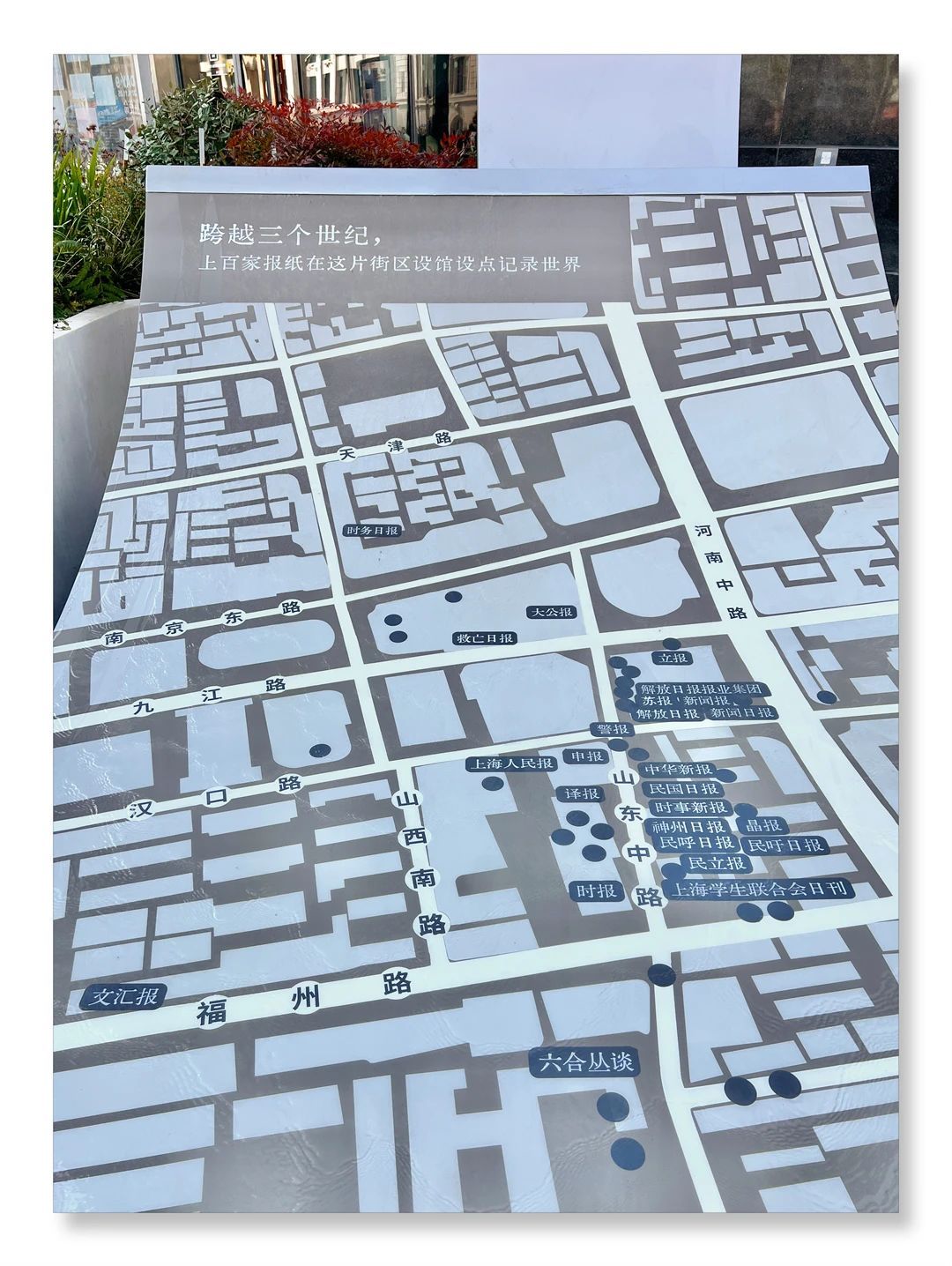 望平街在中国新闻史上有着举足轻重的地位,是一条打着中国新闻烙印的街道。今日的山东中路,即昔日望平街所在,也是百年报馆街,是中国近代新闻业的发源地。从福州路口至南京东路这短短200米范围,跨越三个世纪,上百家报纸在这片街区设馆、设点,记录中国、瞭望世界。1872年,被誉为“近代中文第一报”的《申报》在此创刊。如今,这片街区以“新闻历史文化街区”的样貌焕新归来,成为承载着人民对幸福美好生活向往的一个可阅读、可游览、可体验的现代化人文街区。