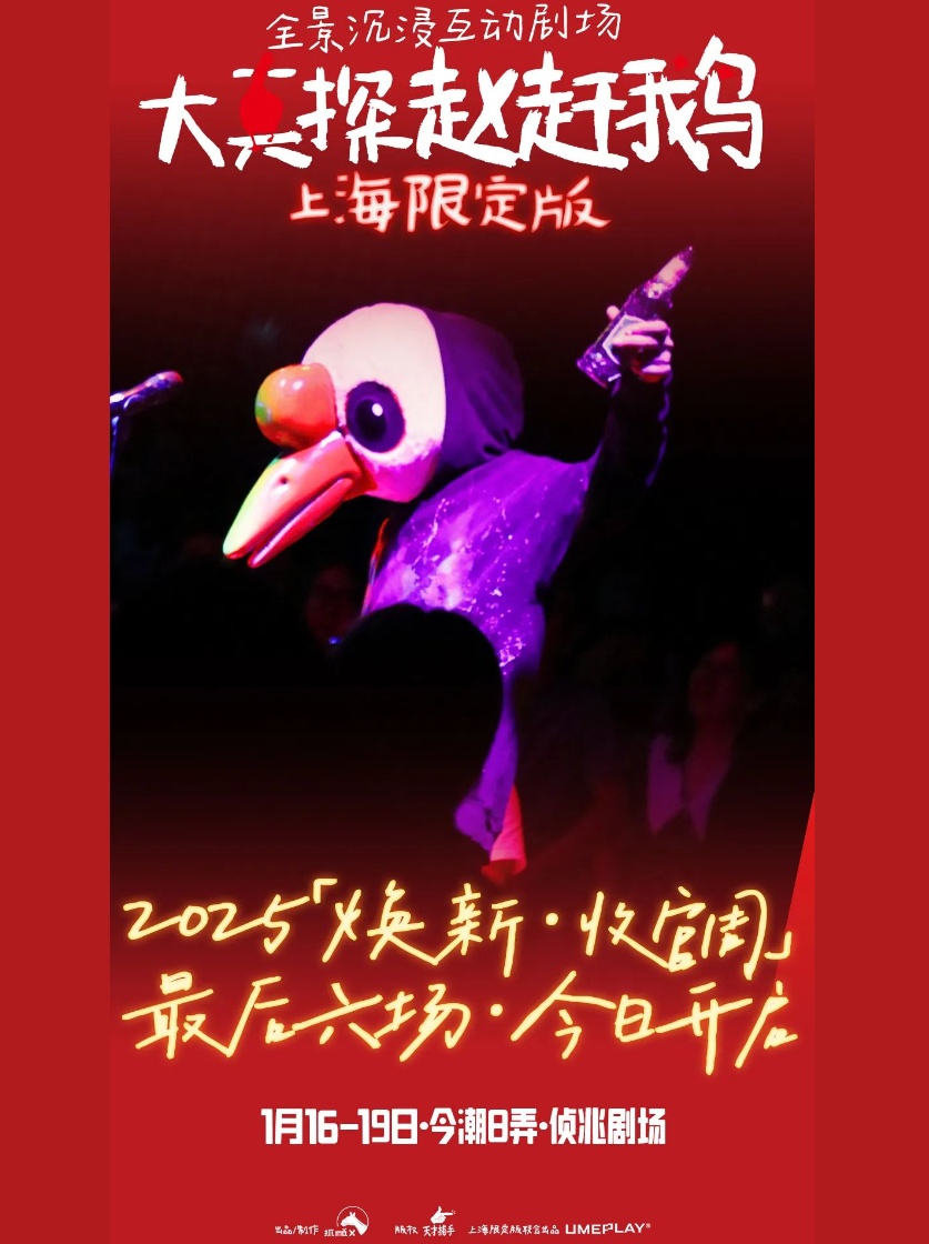 日前,被观众们誉为“沉浸必看的天花板级作品”的全景沉浸互动剧场《大真探赵赶鹅》亮相上海滨港商业中心六楼,为沪上观众们带来一场“超带感”的解密之旅。
