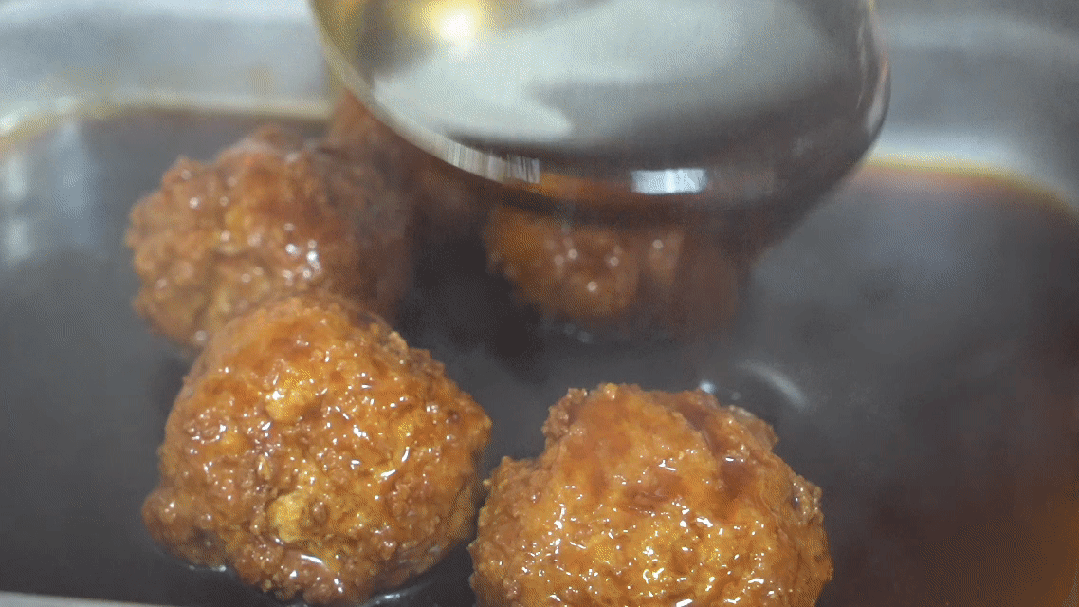 剁馅、拌料、油炸,锅中的狮子头散发着诱人香气,让人垂涎欲滴。“红烧狮子头是餐厅的招牌菜之一,为了确保每一份狮子头都能达到最佳口感,我们在选材和烹制工艺上都下了功夫。”史廷美说。