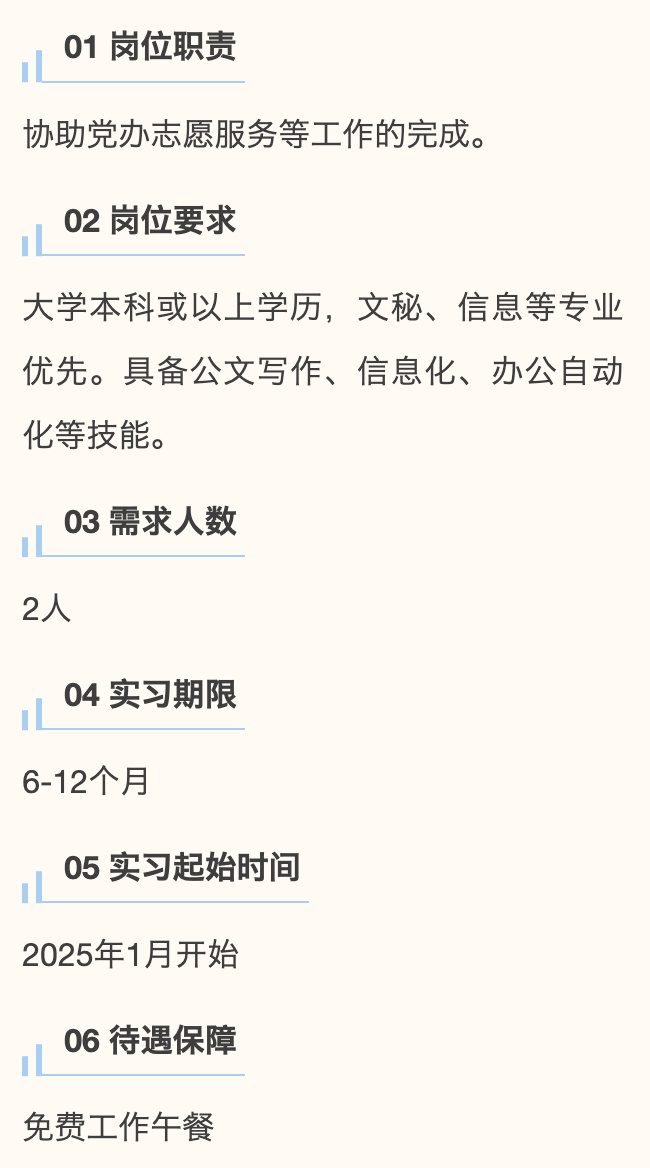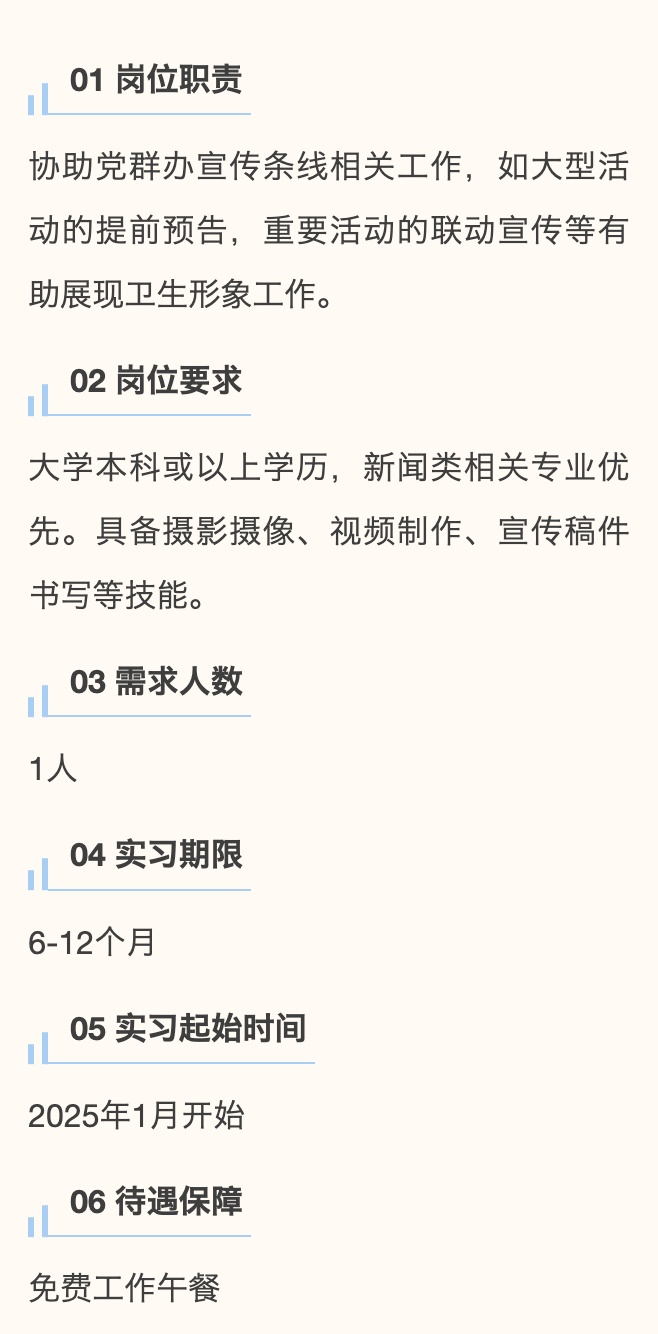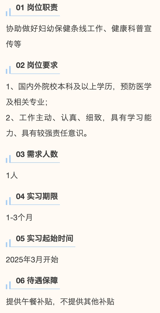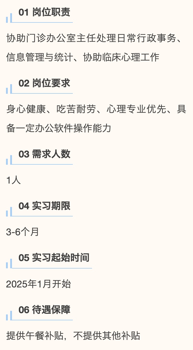 青年共创 合伙人 第七期 用人单位风采 简介:上海市奉贤区卫生健康委员会是上海市奉贤区人民政府工作部门。全区现有各级各类卫生健康单位338所(含村卫生室155所);公立卫生健康机构49所,其中,市级三甲医院1所(国妇婴奉贤院区),区级医院5所,社区卫生服务中心16所、分中心8所、卫生服务站9所,专业公共卫生机构7所,其他单位3所;社会办医134所。 1► 党群工作办公室助理 2► 科教与生物医院药促进科助理 3► 中医药发展科助理 4► 党群服务中心助理 用人单位风采 简介:奉贤区中心医院始奉贤地区唯一一所三级综合性医院。 医院为全市首批区域性医疗中心建设单位、现代医院管理制度试点单位、公立医院高质量发展辅导类试点单位;入选国家卫健委第一批国家分娩镇痛试点医院、中国卒中中心联盟单位、上海市肺栓塞和深静脉血栓防治联盟医院;认证挂牌国家房颤中心。 1► 院办助理 2► 感控科助理 3► 宣传科助理 4► 党办科室助理 5► 人事助理 6► 工会助理 用人单位风采 简介:古华医院,三大核心业务感染性疾病、老年医疗康复、健康体检。同时医院还承担着职业健康体检、健康证办理、征兵体检等重要职责,其中肝科、肺科、老年医疗康复及职业健康体检等领域,更是在奉贤区内树立了行业标杆。 荣获中国生命关怀协会“全国人文管理创新医院”、上海市党支部建设示范点、上海市志愿服务先进集体等荣誉。 1► 办公室助理岗位 用人单位风采 简介:上海市奉贤区精神卫生中心是一所公立二级精神专科医院、奉贤区全科医师规范化培训(精神科)的培训基地。医院目前主要以普通精神科、老年认知障碍科、儿少精神专科、心境障碍专科、睡眠障碍专科为特色诊疗专科。曾多次获得上级部门的表彰和奖励,在维护社会家庭稳定,促进公众心理健康等方面发挥了积极作用。 1► 门诊导医助理 2► 门诊办公室助理 用人单位风采 简介:奉贤区疾病预防控制中心(奉贤区卫生健康监督所),为全区突发公共卫生事件应急处置、实验室检验检测等提供有力保障。 位于公共服务楼一楼的奉贤区公共卫生健康科普馆共分为四大板块,聚焦青少年身体健康、营养健康、口腔健康以及心理健康等方面的健康科普知识,秉持“关注青春,促进健康”宗旨,向青少年及其家庭传播健康知识和健康生活方式。 1► 健康科普馆馆长助理 用人单位风采 简介:奉贤区妇幼保健所是全区一所二级妇女儿童专业医疗保健机构,负责全区妇女保健、儿童保健、新婚保健、计划生育手术等工作的指导、培训、考评和管理。荣获全国妇幼健康优质服务示范区、全国计划生育优质服务示范区等荣誉。 1► 业务办助理 ★