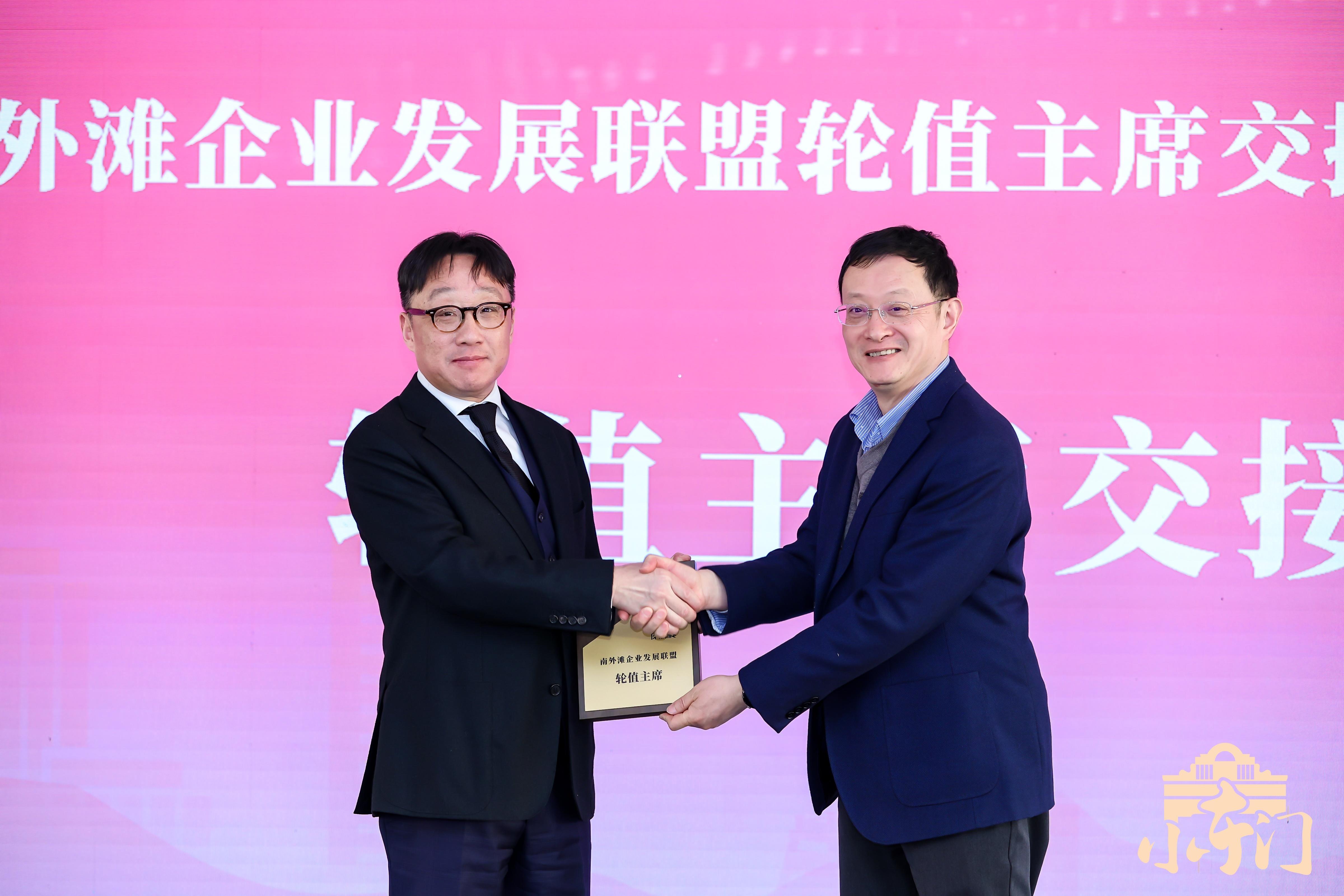 活动中,由南外滩企业发展联盟第三届轮值主席、上海豫园旅游商城(集团)股份有限公司党委书记、副董事长朱立新,向上海综艺控股有限公司党支部书记、执行董事兼总裁李苏粤,进行了轮值交接。同时,2位轮值主席向新入盟的上海外服控股集团股份有限公司、上海悦星文旅投资控股有限公司、上海市建纬律师事务所、建信人寿保险股份有限公司、上银理财有限责任公司颁发入盟迎新礼。华东院大前期规划咨询中心常务副主任、小东门街道科协主席、小东门街道社区规划师叶锺楠聚焦“打造城市ESG标杆,引领南外滩高质量发展”作主旨演讲。