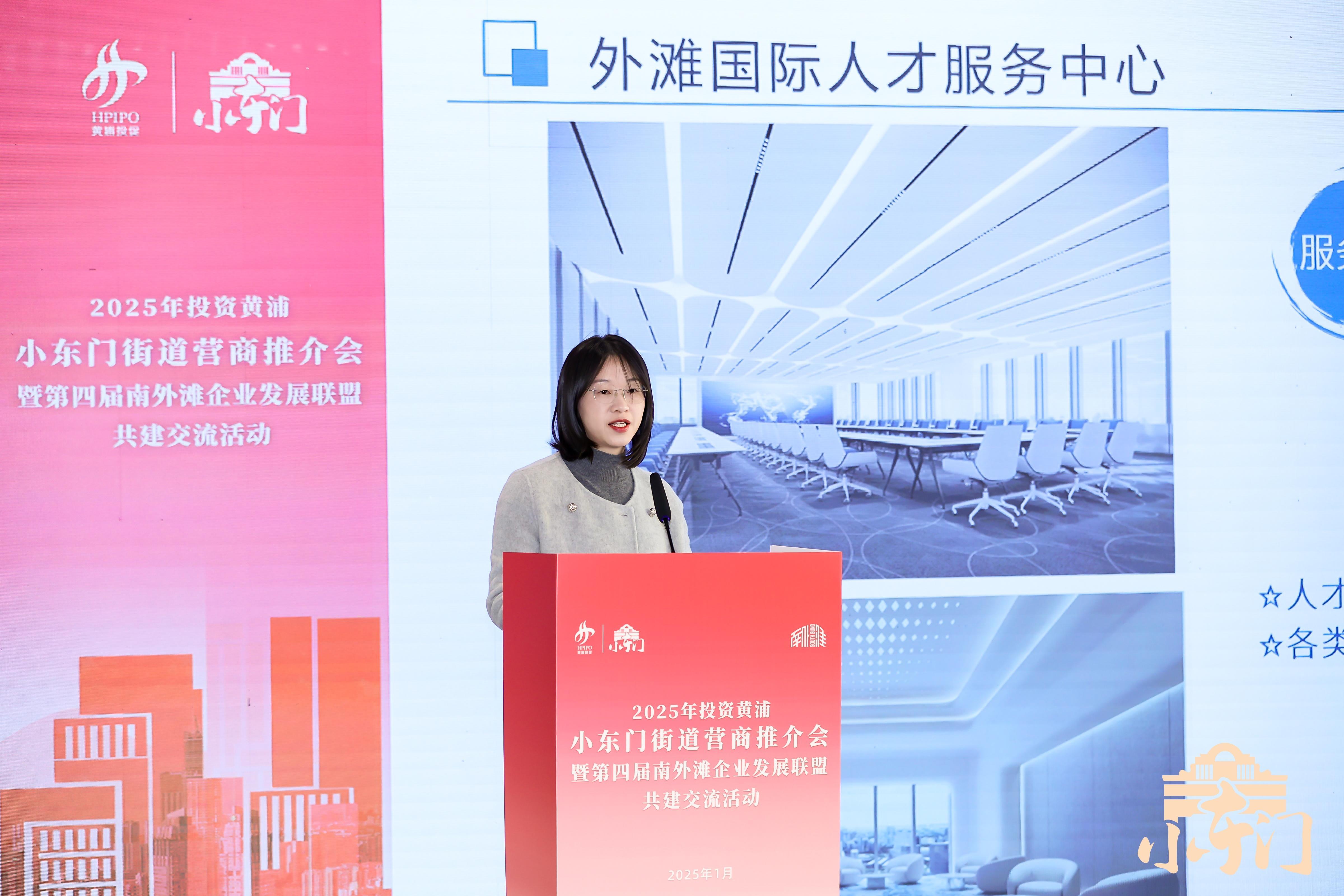 为着力打造黄浦经济发展“新引擎”、城市形象“东大门”,凝聚企业共谋发展新篇,1月15日下午,2025年“投资黄浦”之小东门街道营商推介会暨第四届南外滩企业发展联盟共建交流活动举行,区委常委、副区长徐知出席。