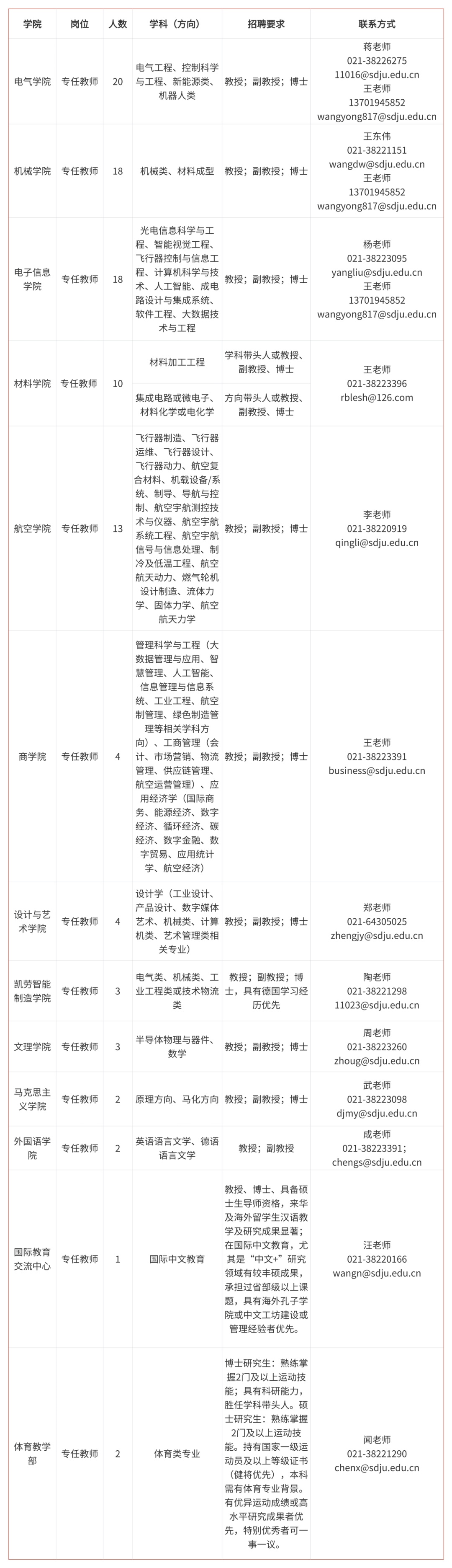2.专任教师岗位原则上需有博士研究生学位,专业及研究方向符合学校定位及学科建设发展需要,在教学科研上有发展潜力;