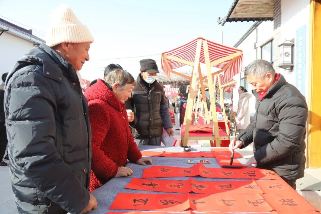 文明集市上,既有充满烟火气的年俗体验、本地农民特色蔬果展销等活动,也有便民咨询、文明习惯互动小游戏等摊位。只见书法老师摆开书案,现场笔走龙蛇,一副副对仗工整、寓意吉祥的春联,一个个苍劲有力、饱含温情的“福”字跃然纸上。“感觉这年啊,一下子就要到啦!”村民孙乐心满意足地欣赏着手中的作品说。