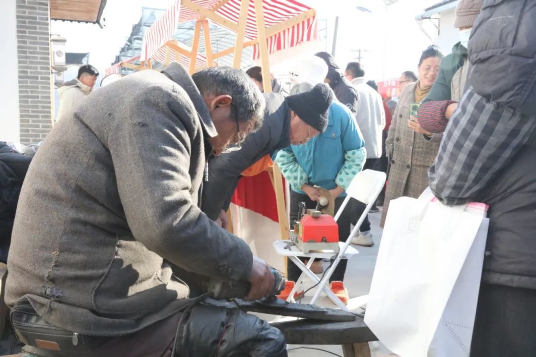 磨刀摊位前更是人头攒动,让村民们感受到“家门口”的贴心服务。“今天这个活动好,以前要享受到这些服务得跑老远,现在来赶个集顺便就体验了,收获满满。”八旬老人辛庆球说,赶过大集,也赶过早集,这回赶了一次文明集市。