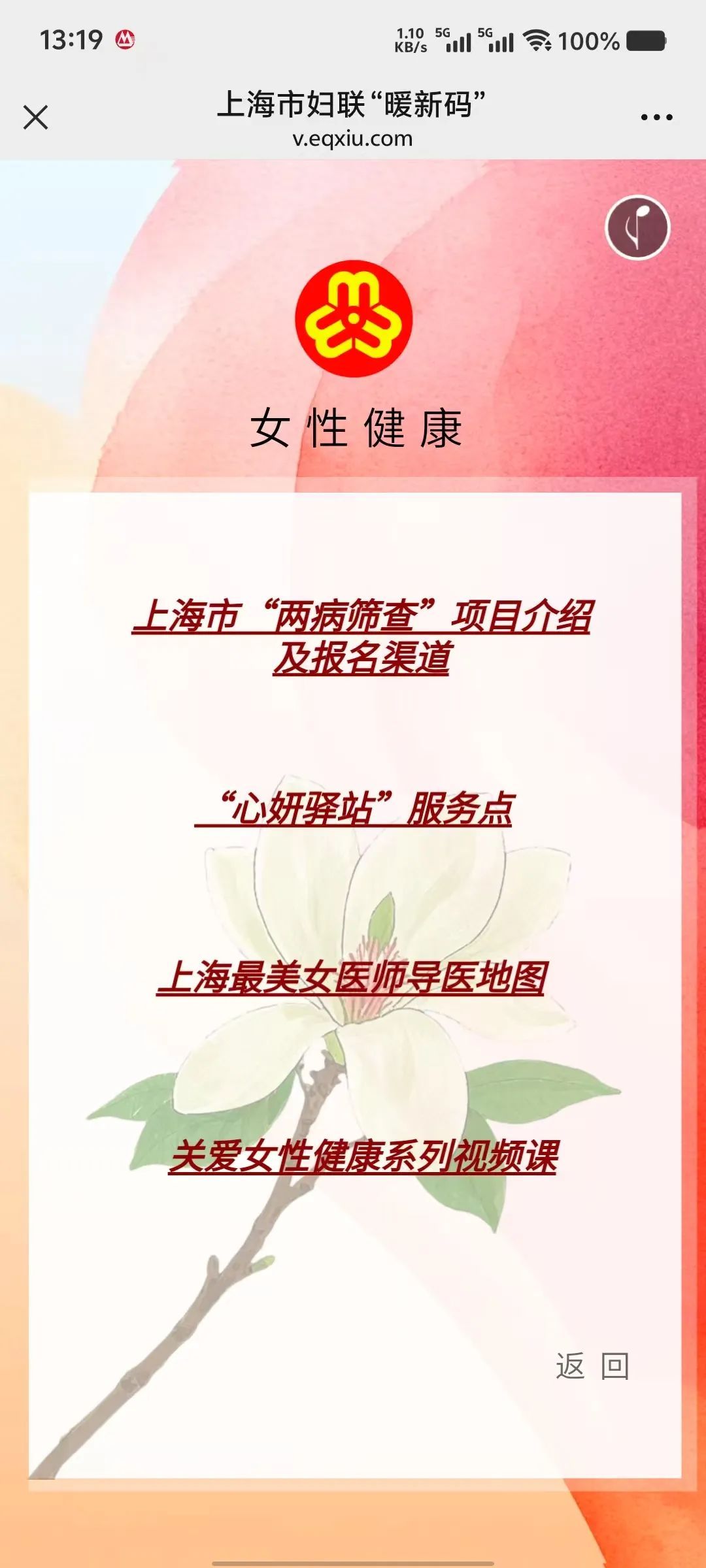 全都有;了解“两病筛查”具体内容,学习女性健康视频课,