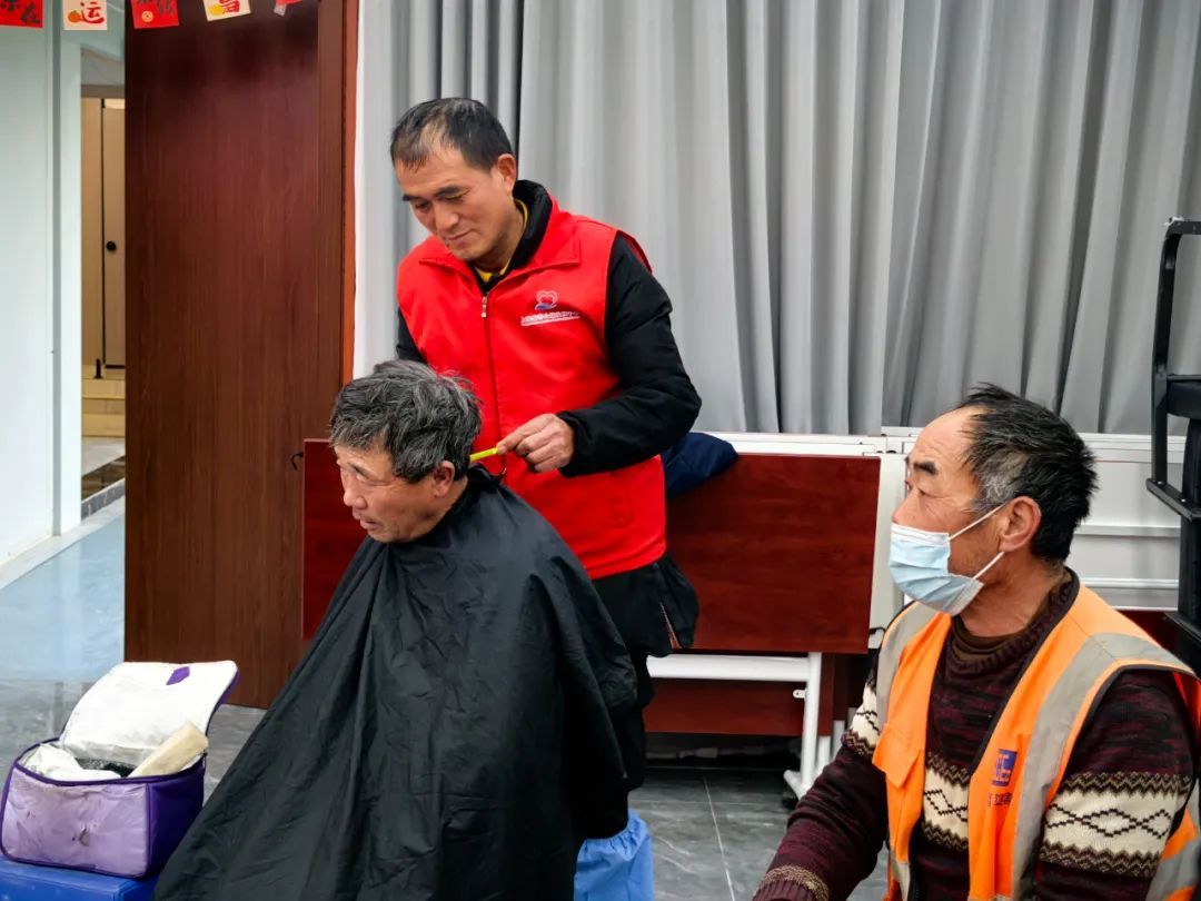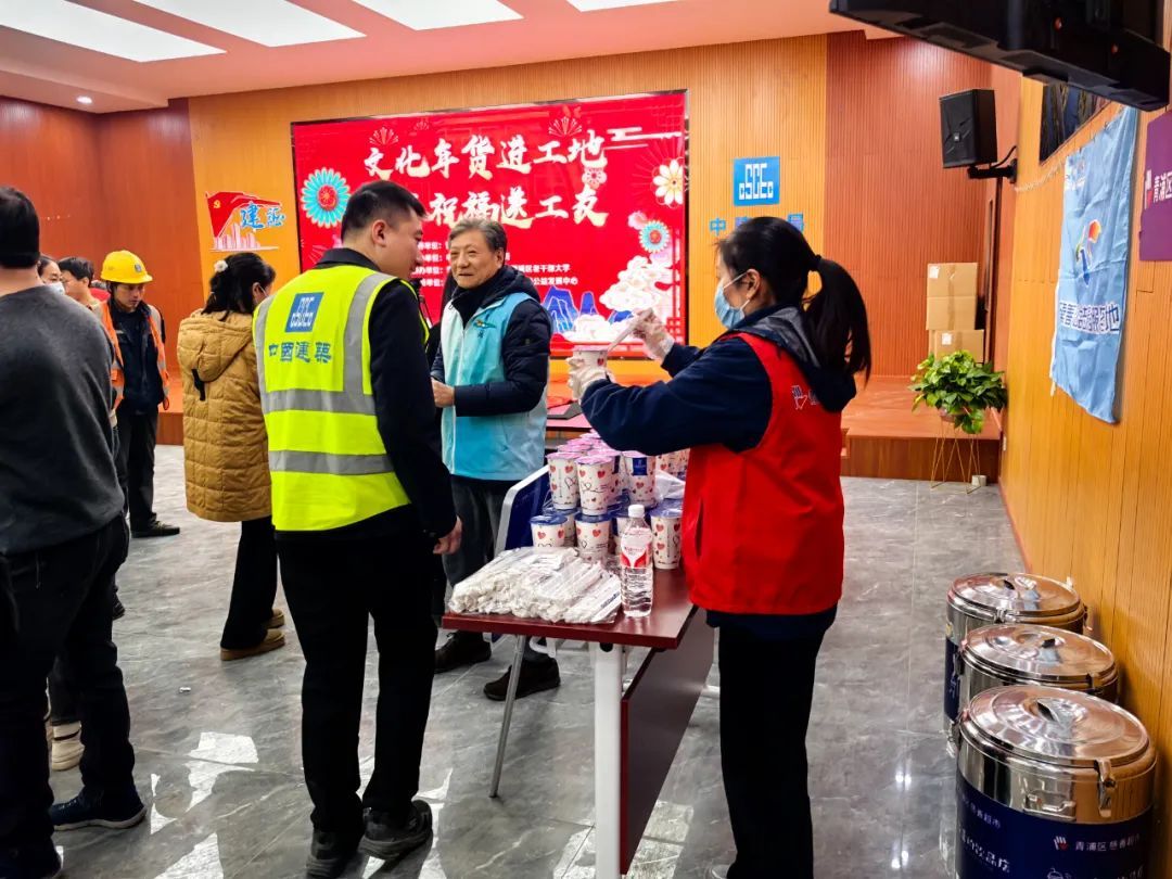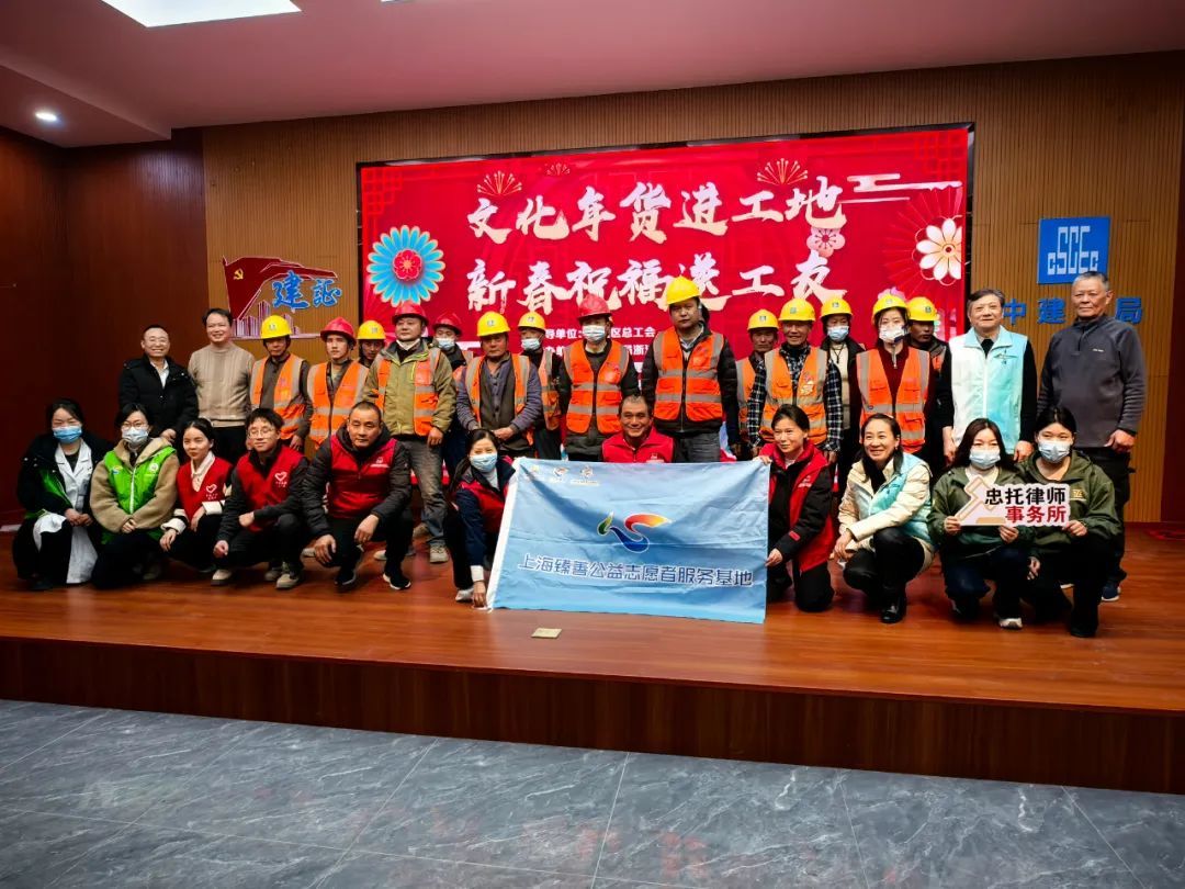 1月14日下午,“文化年货进工地,新春祝福送工友”主题活动在中建二局复旦大学附属中山医院国家医学中心建设项目工地开展,为坚守一线的建设者们写春联、福字,同时提供免费理发、测量血压和法律咨询等服务,用丰富的“文化年货”传递节日祝福和“第二故乡”的温暖。