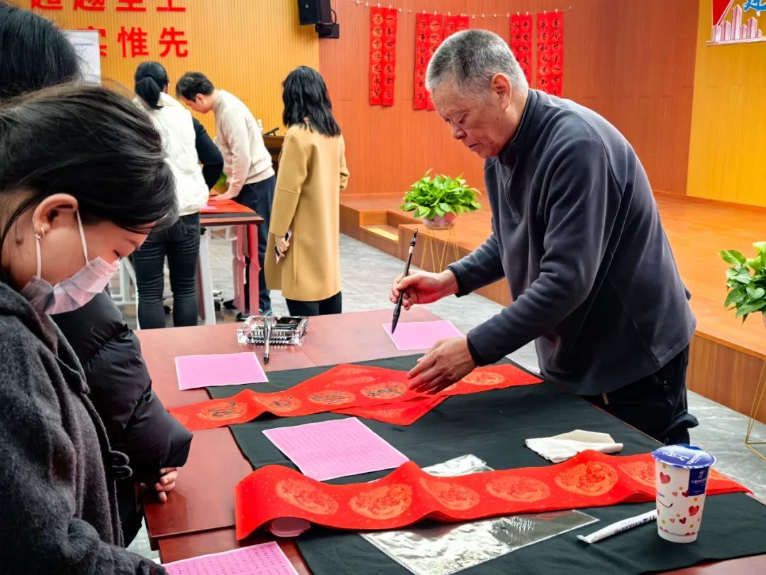 丹青溢彩,翰墨飘香。青浦区书法家协会的书法家们在现场挥毫泼墨、笔走龙蛇,一个个不同写法的福字、一副副饱含美好祝愿的春联,营造出欢乐祥和的新春氛围。