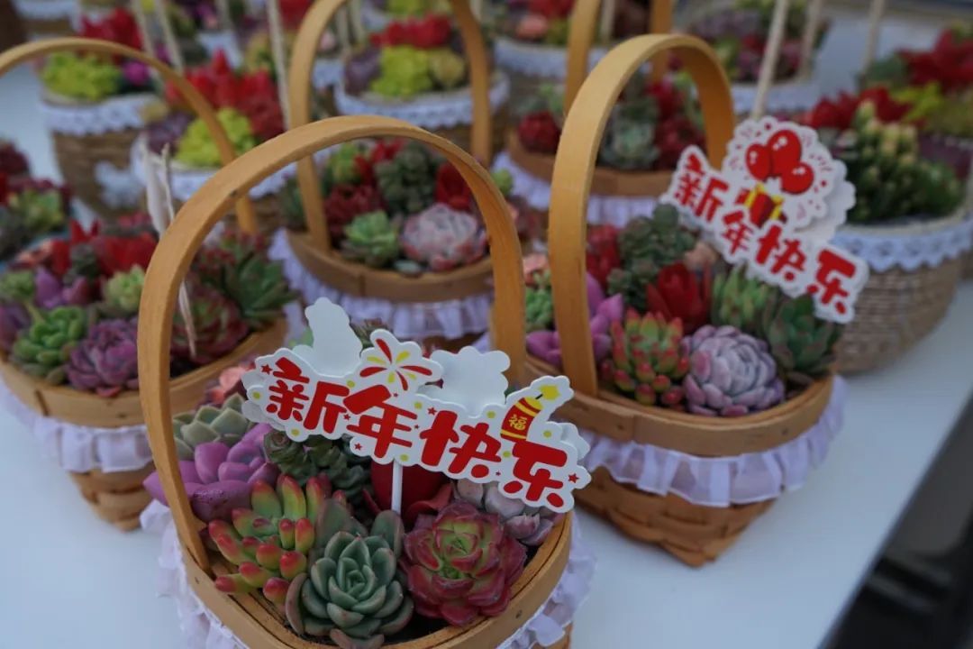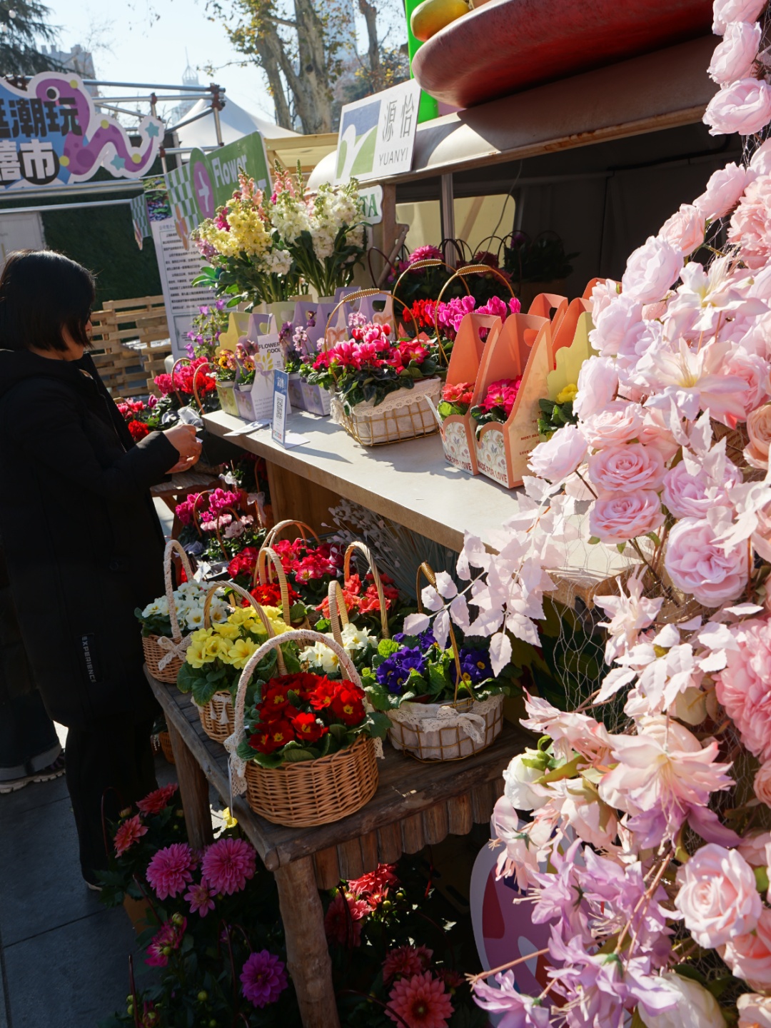 整个迎春花市除了常见的热门年宵花品类,还有形态各异的多肉植物、冬春季节的时令草花,不仅如此,还有花卉园艺文创和蔬果农产品,不仅好看出片,更是好吃又好玩的好去处。