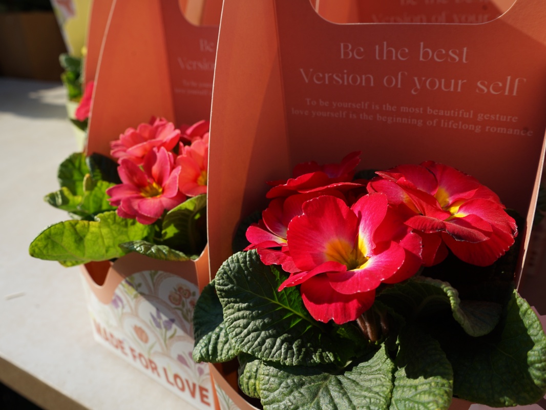 比如,在整个迎春花市中非常醒目的源怡展位,来自日本坂田的报春花、红红火火的仙客来、各色大丽花等花卉装点出了热闹的新年氛围,价格大多在30元左右,最低仅需十几元。