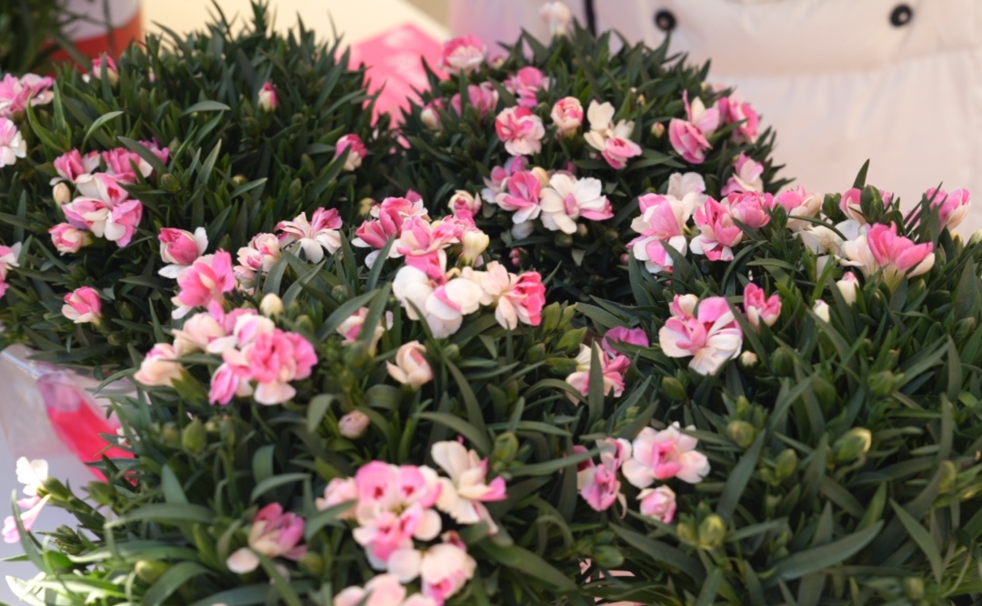 而在荷兰多盟展位,一花三色,花瓣上渲染着桃白、珊瑚粉和玫红的康乃馨令路过的市民们啧啧称奇。