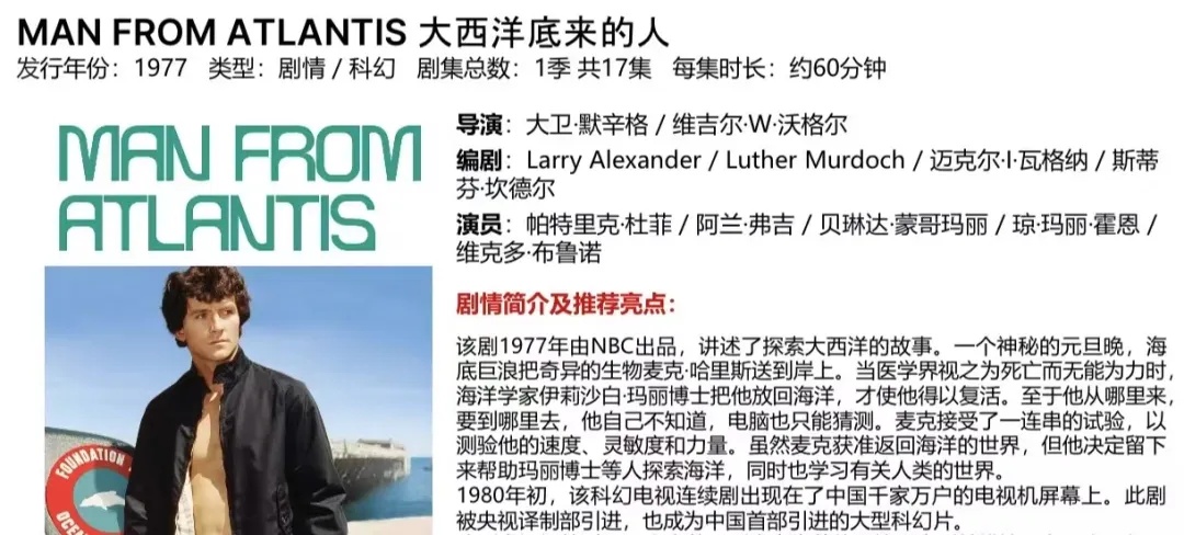 如今,虽然时光已经流逝,但《大西洋底来的人》这部电视剧仍然在很多人的心中留下了深刻的印象。它不仅是那个时代电视文化的一个缩影,更是许多人美好回忆的一部分,至今都记忆犹新。