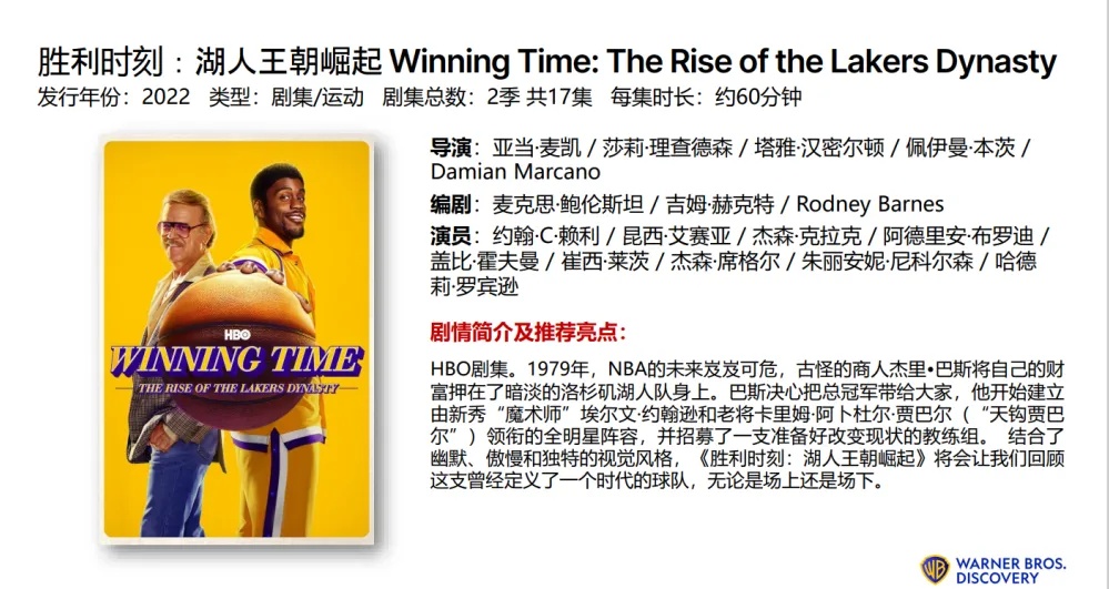 首批剧目除了《大西洋底来的人》,之前刚刚播完《胜利时刻:湖人王朝崛起》,同样承载了很多人的青春,将带大家回顾这支曾经定义了一个时代的球队!