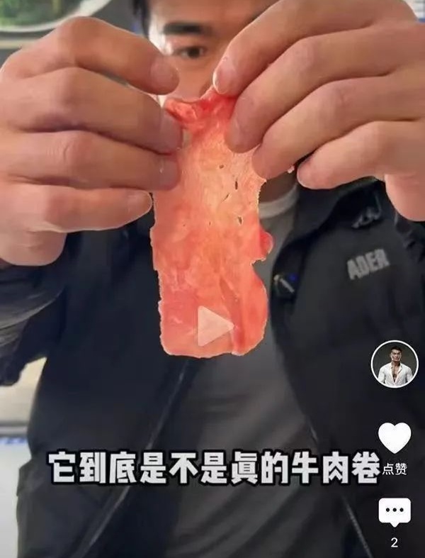 据此前澎湃新闻报道,网红李维刚带货的原切牛肉卷受到质疑,有网友指出牛肉卷煮熟后没有牛肉的纹理,怀疑并非是“原切的”,而是“合成的”。