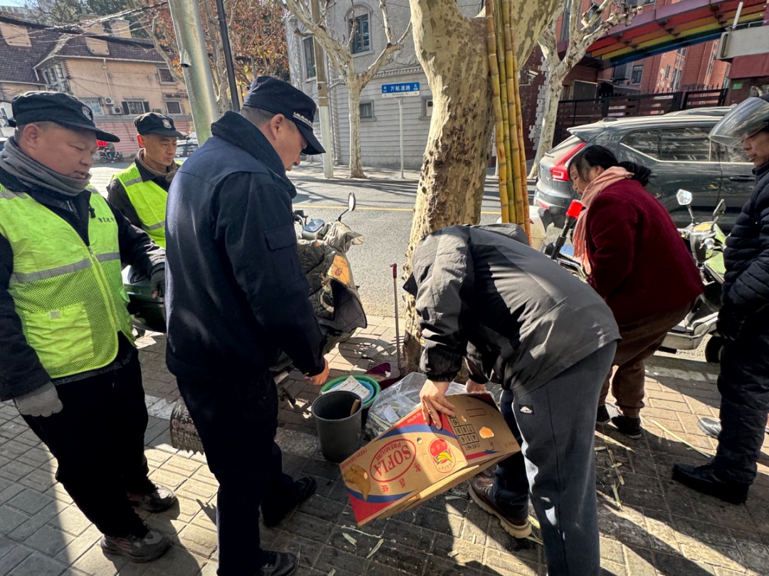 两周来, 曹家渡街道综合行政执法队联合多方力量,以整治街面市容环境为重点,采用定时巡查与不定时抽查相结合的方式,增加巡查频次,细化检查要求,确保及时发现并提醒当事人纠正各类违法违规行为。