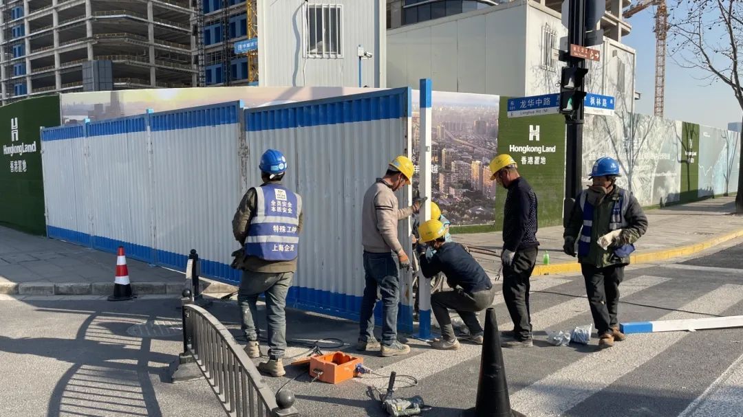 17日下午,记者赶赴现场,沿途发现机动车道上有多个指示牌提醒枫林路(龙华中路—瑞宁路)段封闭,请车辆绕行。在枫林路龙华中路路口,已经用隔离栏将枫林路阻隔,施工人员正在加固彩钢围挡,对枫林路进行封闭,防止行人、机动车和非机动车进入。交警、辅警在路口指挥疏导,提示想要去龙腾大道的途经车辆从东安路或小木桥路绕行。据悉,徐汇交警前期已在网上进行相应公示,并在相应区域摆放了施工指示牌,给广大驾驶员提前提示。当天开始施工期间,路上标志已经更改,封闭施工路牌也已摆放完毕。