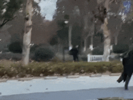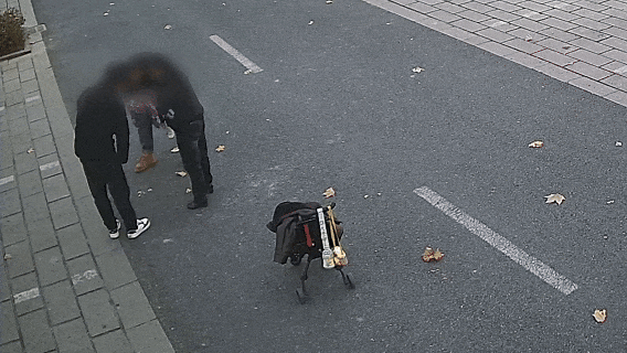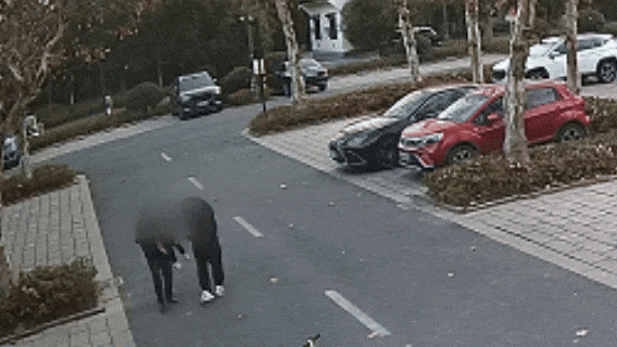 王灿楠一边小心抱稳孩子,一边按压腹部