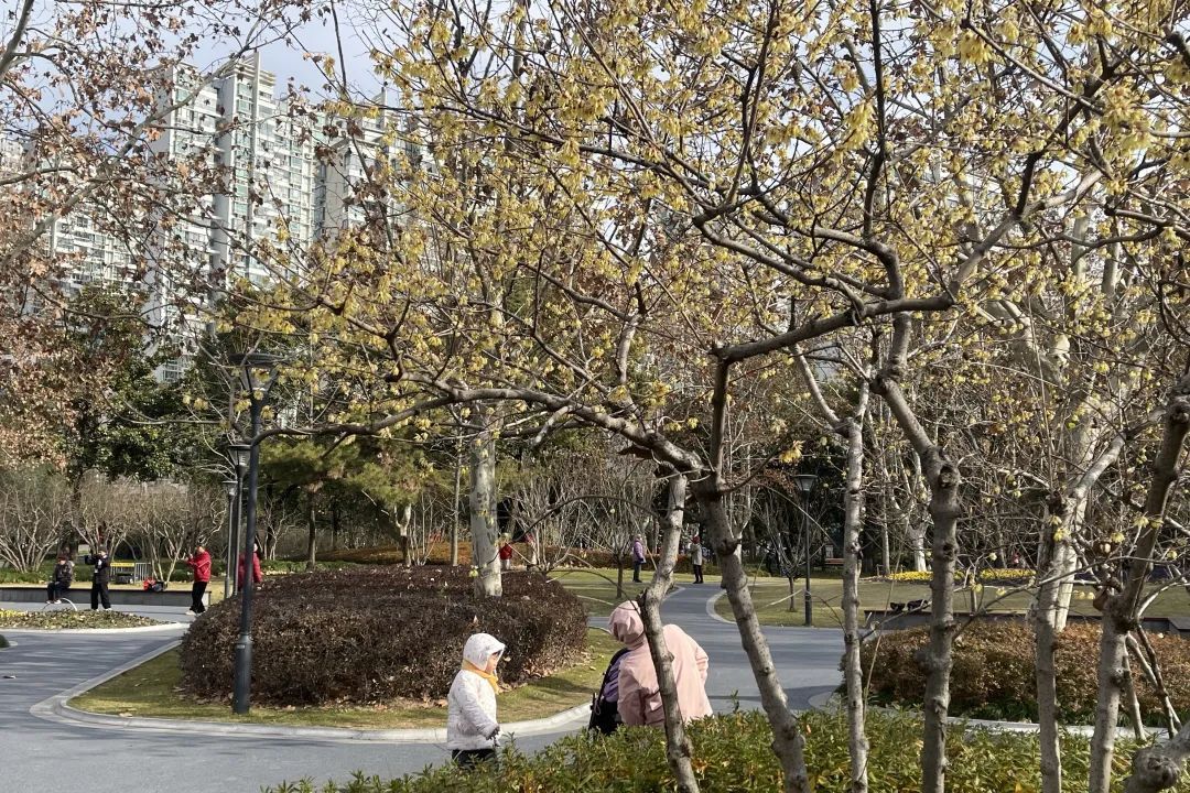 “最近每天早上来公园健身,都是循着花香过来,心旷神怡。”蜡梅树下,打太极拳的老人笑呵呵地说。