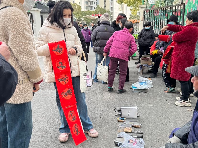 在广场区域,一系列民俗活动更是吸引了大量居民驻足参与。现场写对联、送福字、剪窗花,不仅让居民们感受到了传统文化的魅力,还为大家送去了新春的祝福。磨剪子、理发等传统服务,也让居民们感受到了实实在在的便利与关怀。此外,交通安全、禁毒宣传、反邪教、反诈骗等各类咨询服务,以及免费贴膜、手工艺品、花卉等摊位,也为居民们提供了丰富的选择,让大家在欢乐中收获了知识与实惠。