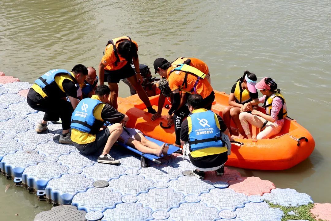 浦江镇行政区域面积大,辖区水系丰富,各类水上活动、水上赛事等都须有充分应急救援准备。对此,浦江镇探索构建基层红十字会、红十字学校、红十字医院、专业志愿者深度融合的联合救援机制,于2024年6月成立“水·陆·空”救援力量联盟,并开展应急演练活动。