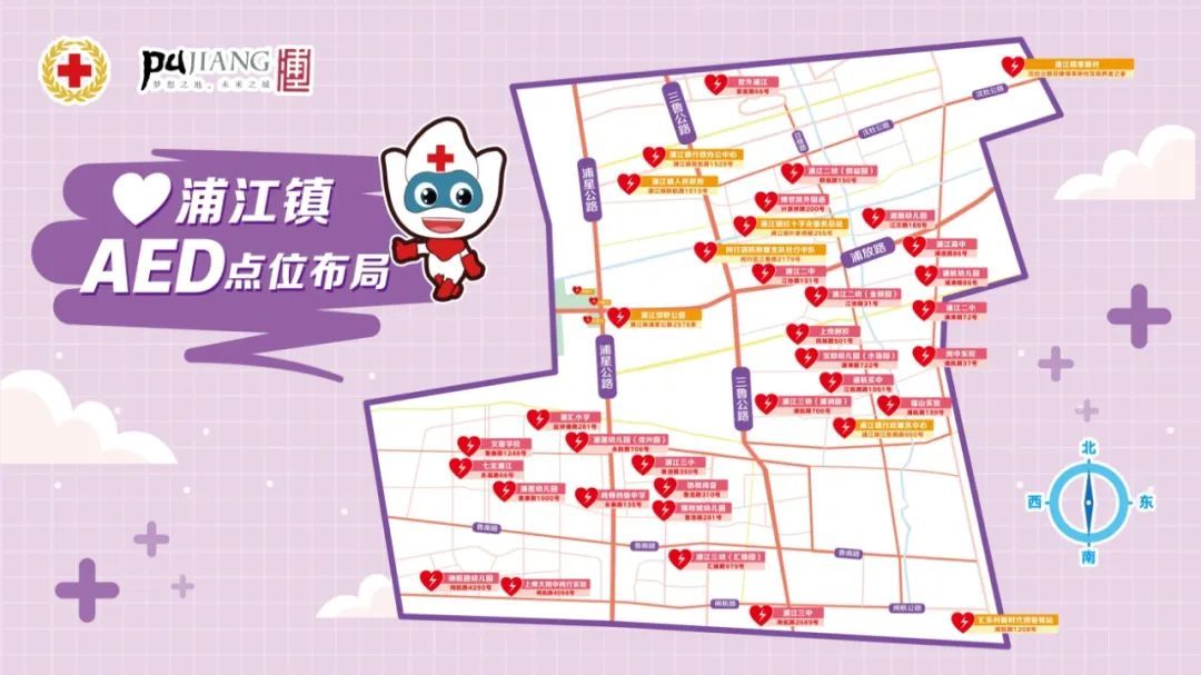 而为了提高公共场所急救水平,浦江镇红十字会还绘制了“全域化”AED生命地图,并进行广泛宣传。浦江镇于2023年率先在全区实现学校AED配置全覆盖,共计28台;同时,行政服务中心、郊野公园等公共场所布点11台。AED生命地图的绘制,让有需要的人能更快取得设备。浦江镇还构建了集平台、课程、活动于一体的生命教育阵地,发挥浦江镇学校已有生命教育场馆优势,将学校防震减灾科普馆、危化品体验馆纳入浦江学区场馆共享清单,向全镇开放,为建设健康浦江、平安浦江、幸福浦江贡献红十字力量。