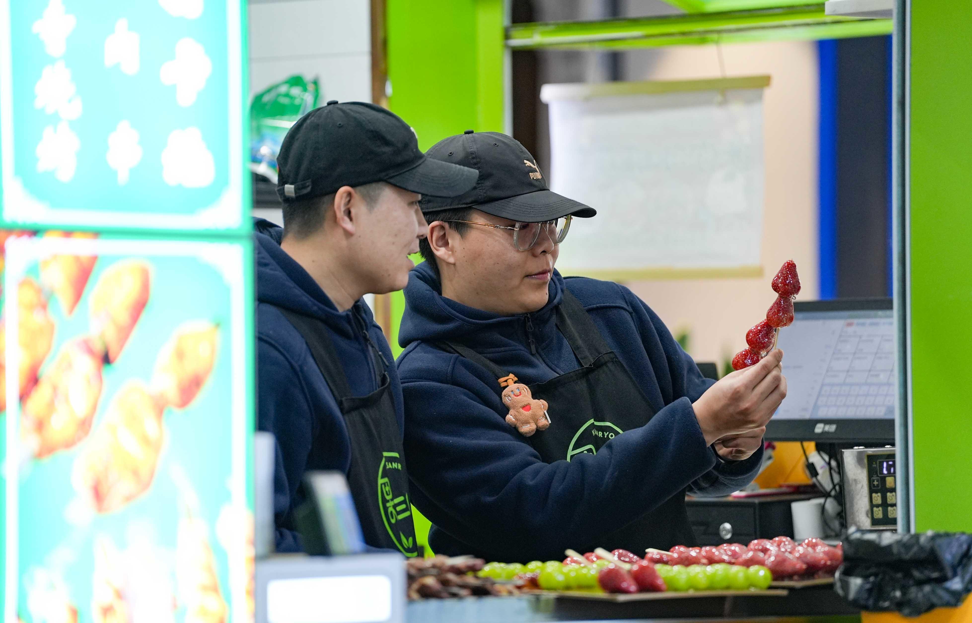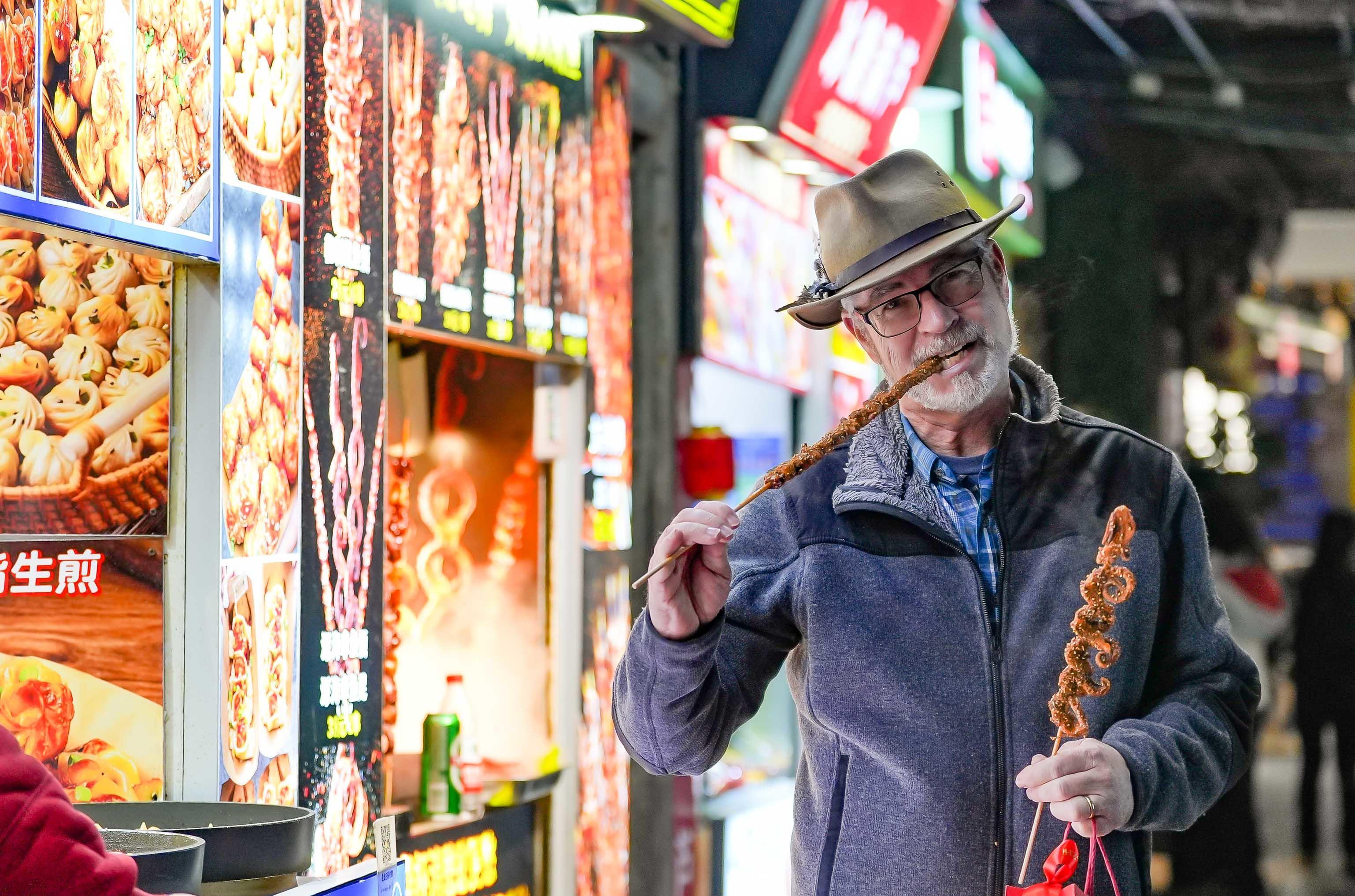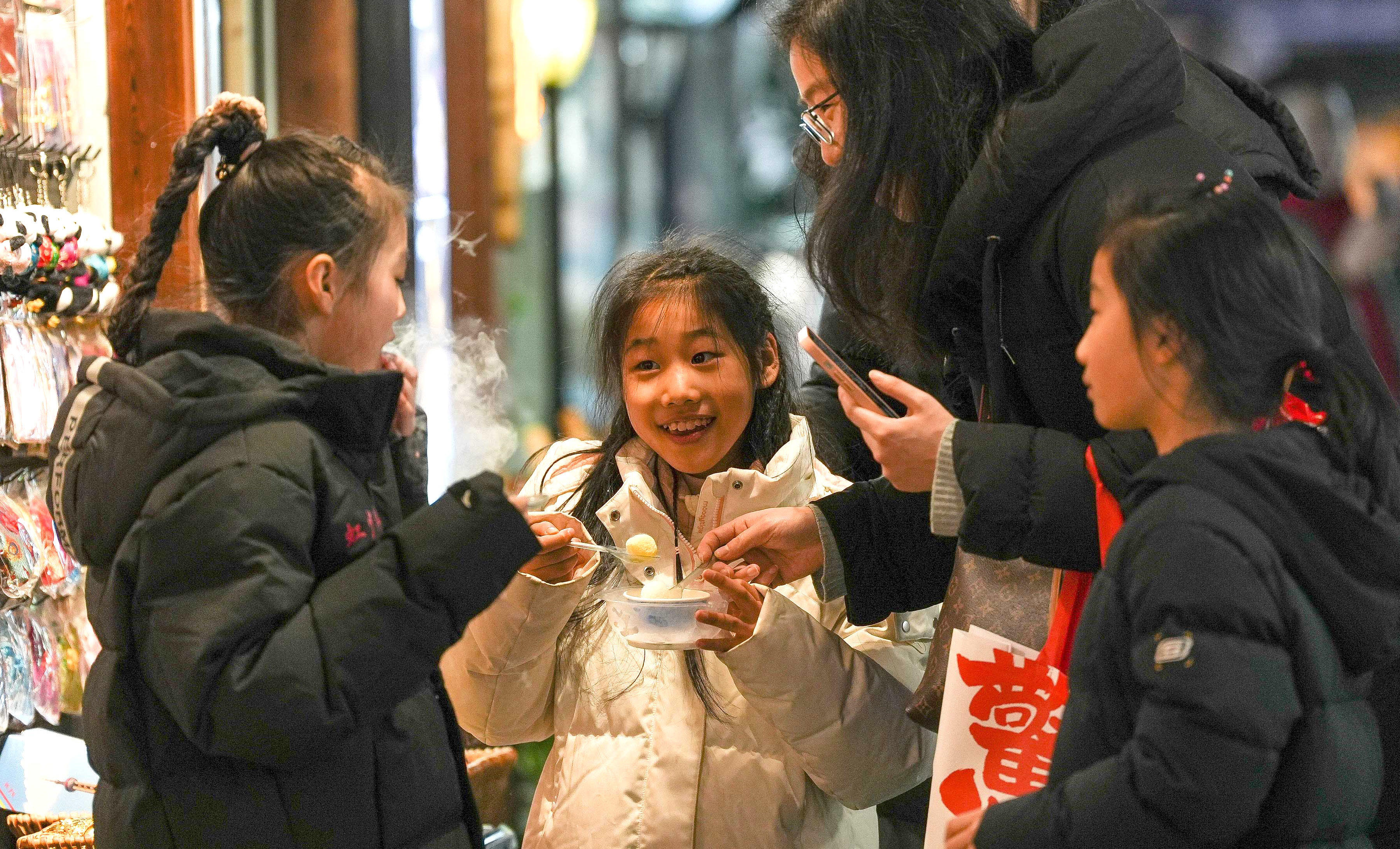 田子坊里穿梭着许多不同肤色、说着各种语言的外国友人。他们被这里春节限定的喜庆氛围深深吸引,在传统剪纸摊前,看着民间艺人手中的剪刀上下翻飞,剪出精美的图案;在小吃摊前,品尝着中国特色小吃,一个个都露出满足的笑容。