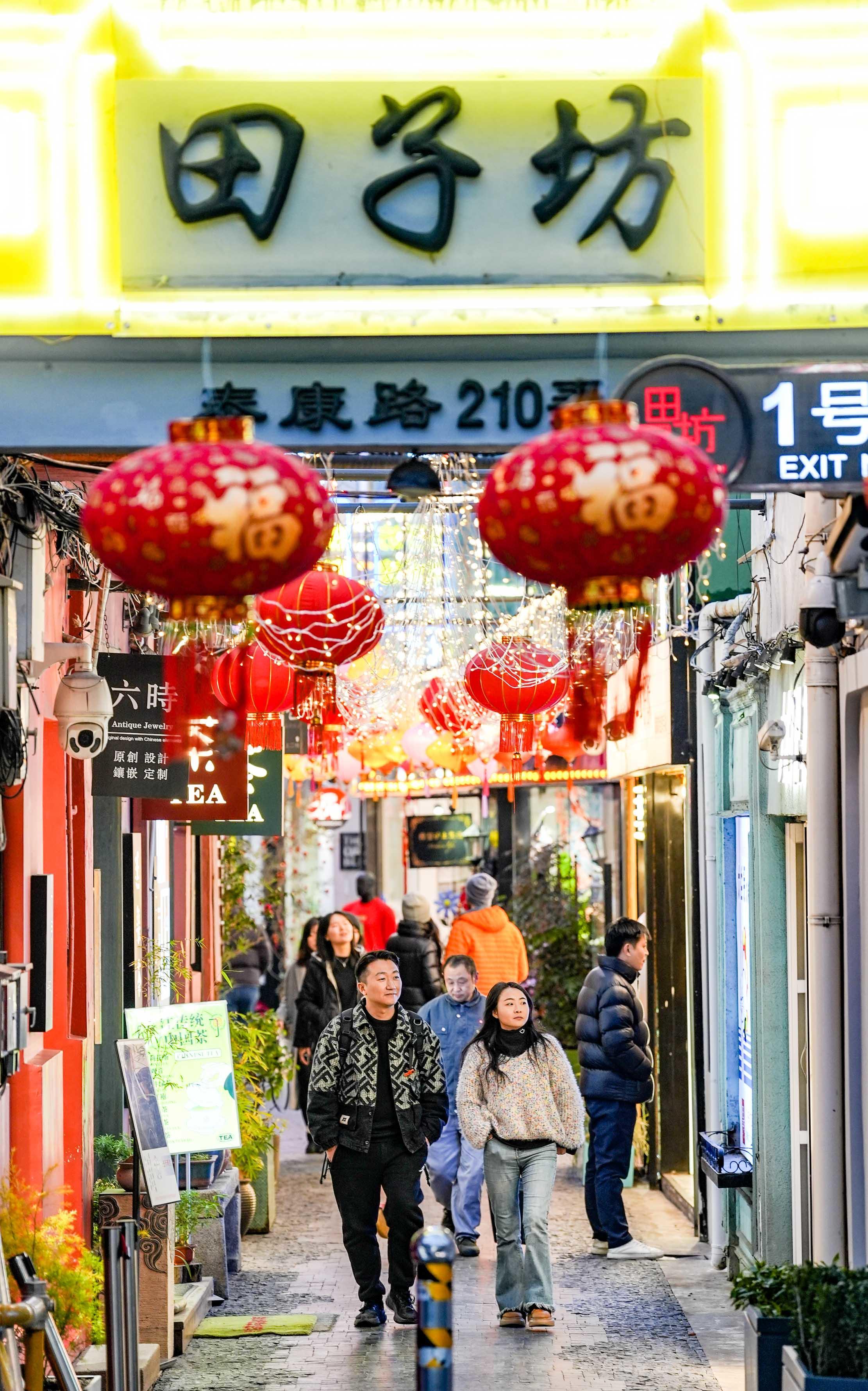 春节将至,上海田子坊洋溢着热闹和喜庆的氛围!这里既有浓浓的上海弄堂特色,又因中外游客的纷至沓来,形成了独特的文化交融景象。