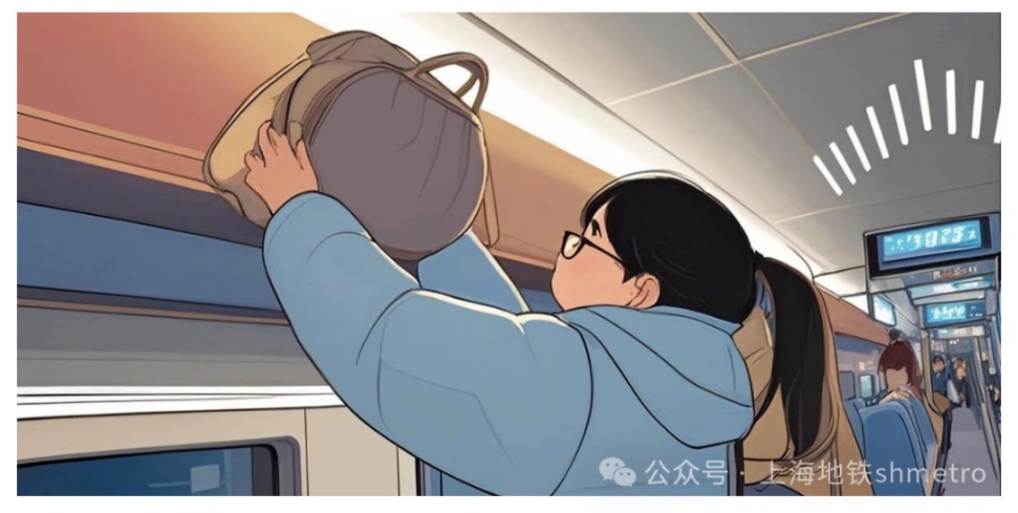 温馨提示:市域机场线动车组车厢内设置了大件行李架和上部行李架,放置好行李,轻松出行。