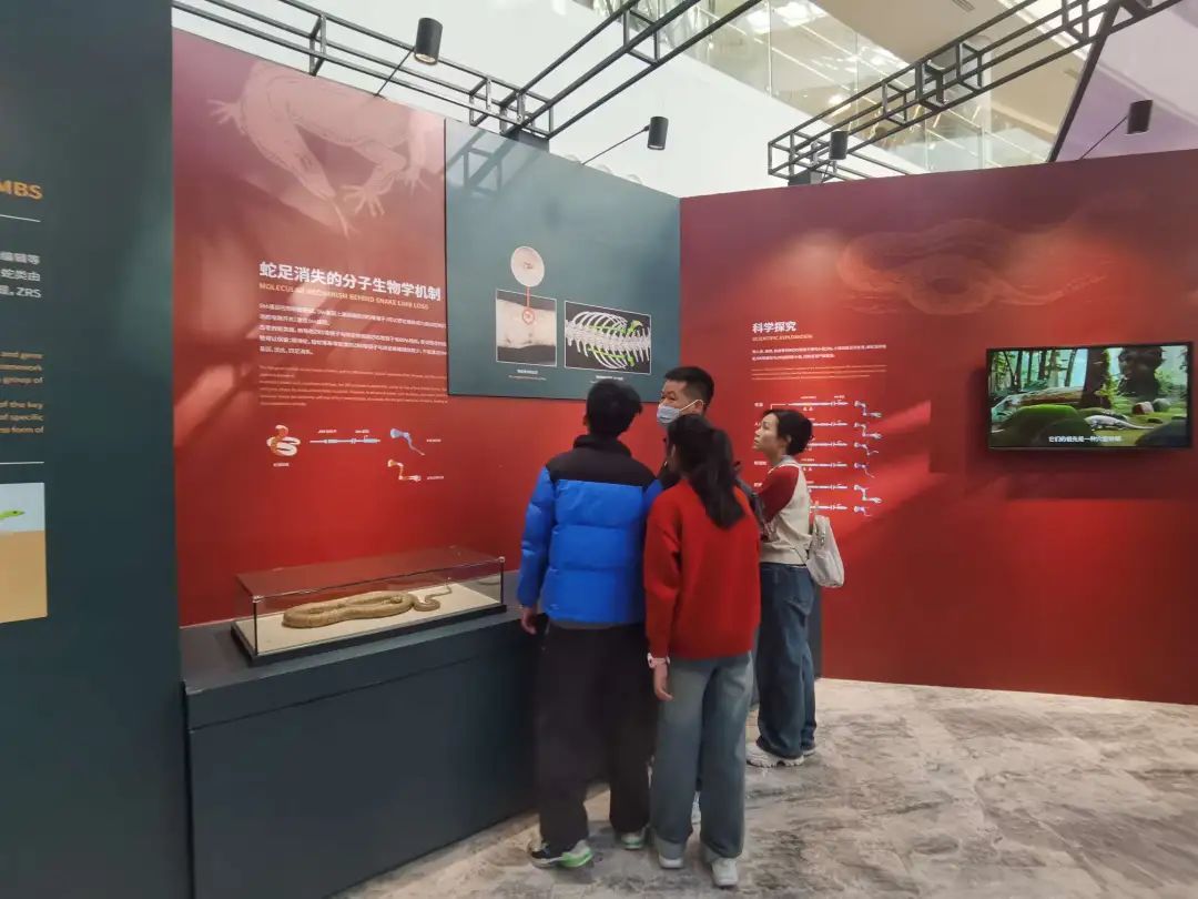 展览中,观众可以了解蛇类的起源及其失“足”之谜,通过动画演示获知蛇类如何从恐龙时代幸存并繁衍至今,通过3D打印毒牙模型了解毒蛇毒液系统的演化。同时,观众可以参与互动,猜测不同生态环境中蛇类的适应性,深入了解蛇类多样性。