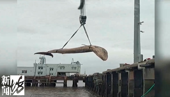 这条鲸鱼体长约6米体重约3吨尸身完整,尚未腐烂经现场专家初步鉴定为须鲸类幼体。