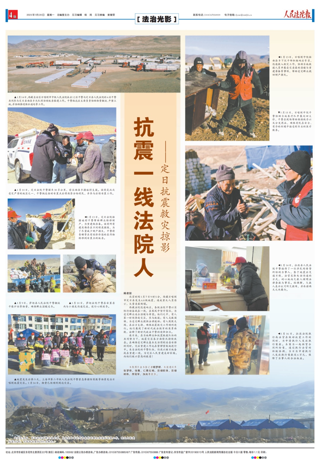 西藏法院迅速响应,各级法院干警以实际行动奋战在一线,在寒风中坚守岗位,为受灾群众送去温暖与希望。他们之中,有人第一时间奔赴灾区,参与救援;有人克服困难,为受灾群众提供法律援助;有人默默无闻,在后方支持,确保抗震救灾工作顺利进行。他们展现了新时代政法铁军的英勇面貌,诠释了新时代政法干警的使命担当。