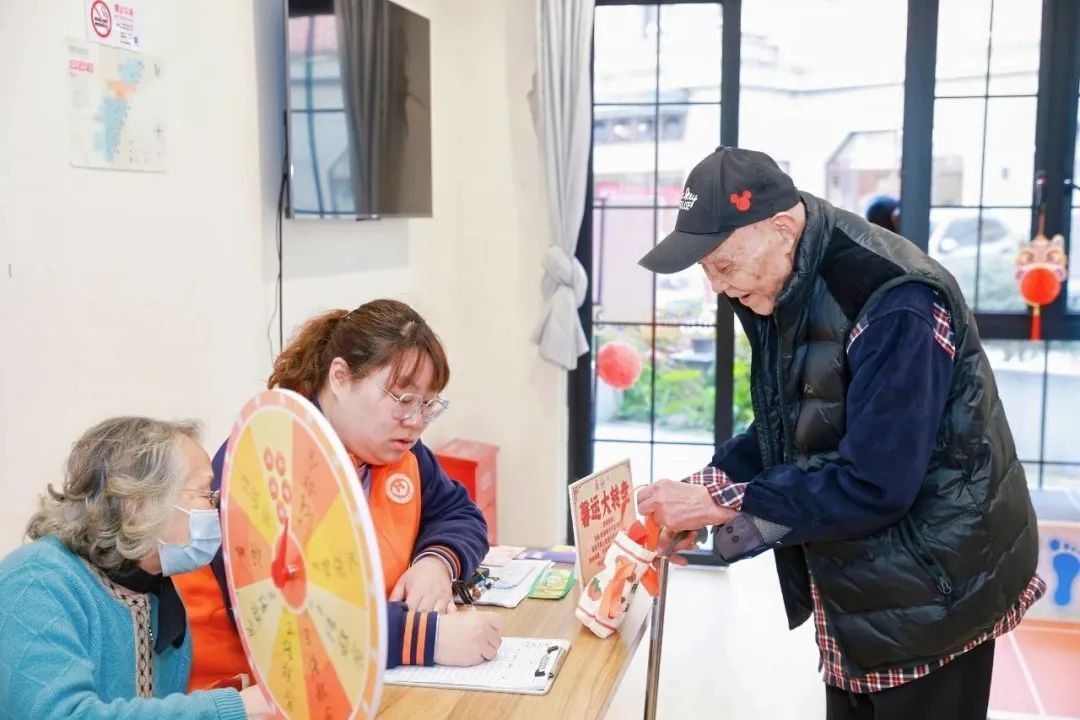 还未走进活动室,欢笑声已不绝于耳。以“馨福”为主题的游园会巧妙融合了传统与现代元素,设置了馨运大转盘、馨悦大富翁与馨动套圈圈三大长者们喜闻乐见的趣味游戏。老人们无忧无虑地玩乐,手中赢取的游戏币也在不知不觉间变成了厚厚一叠。